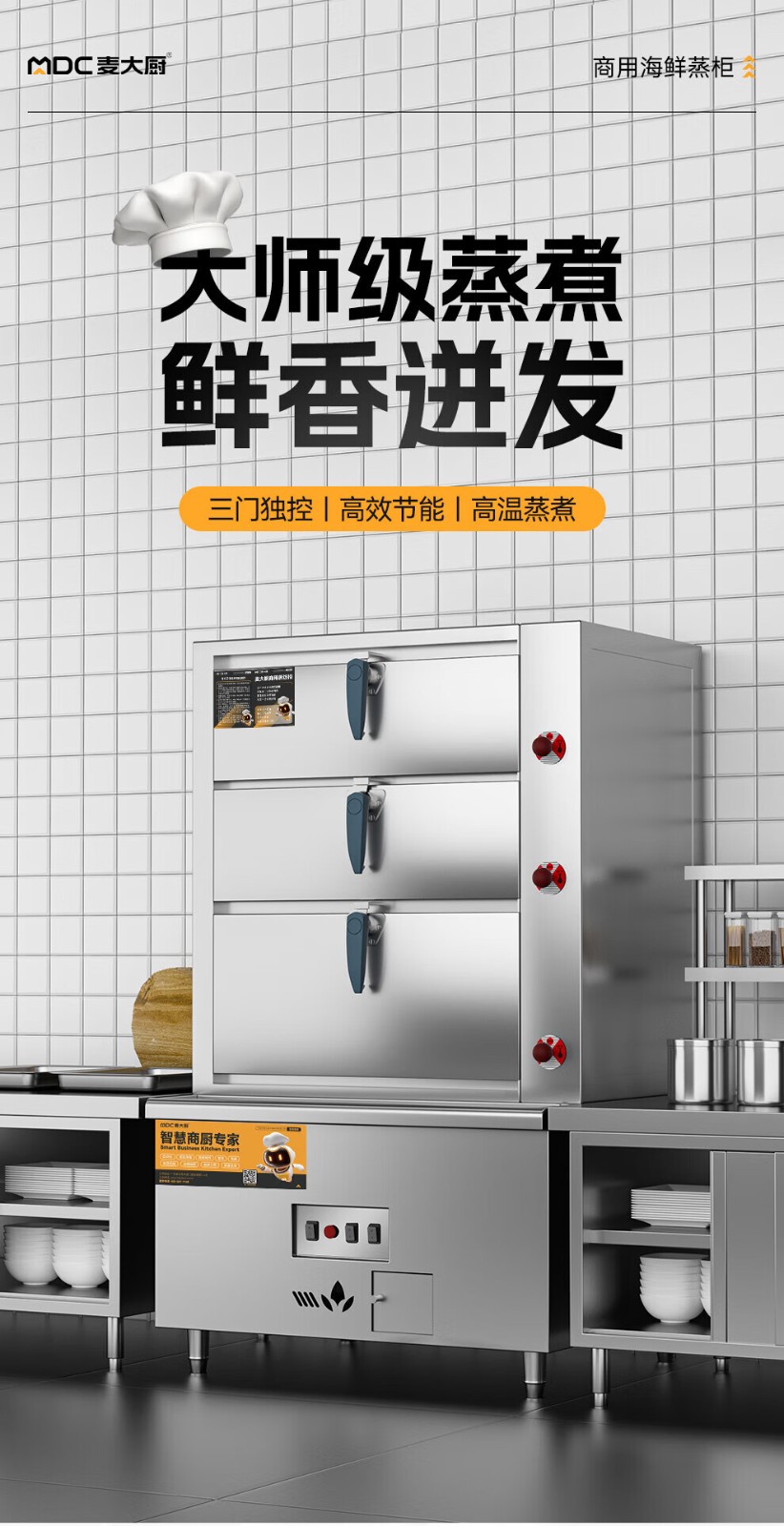麥大廚商用蒸柜1070mm智能觸屏電熱款三門海鮮蒸柜