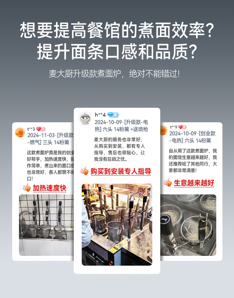 麥大廚創業款電熱6頭14粉籬自動煮面爐商用