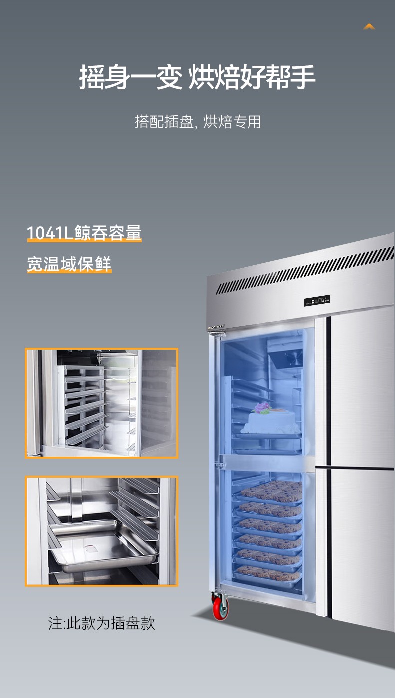 麥大廚4門風冷無霜冷藏冷凍插盤柜商用