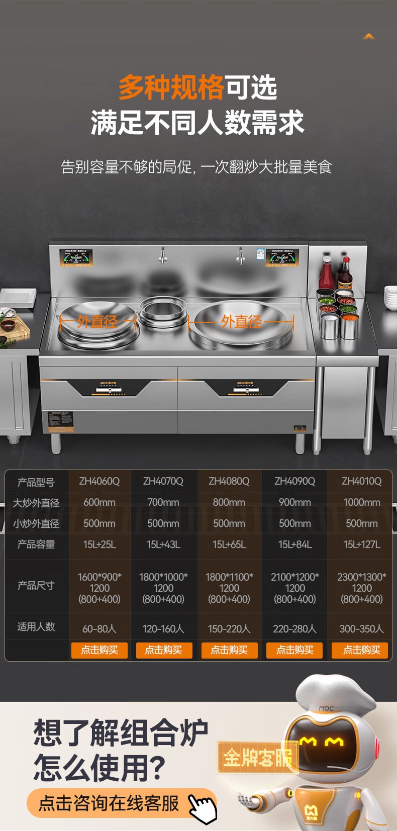 - 更多MDC商用大小組合爐規(guī)格咨詢在線客服