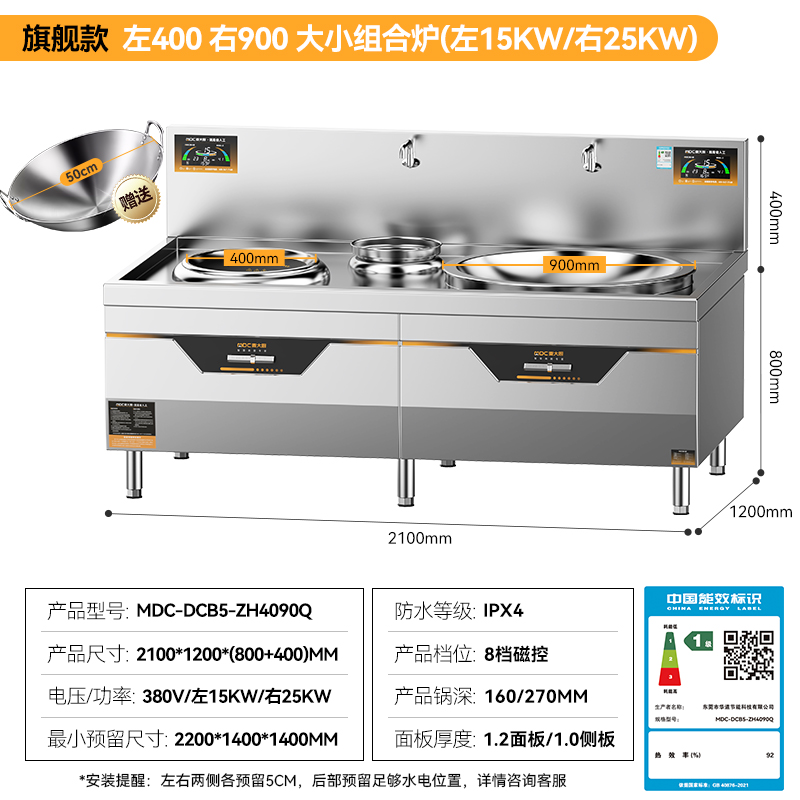 麥大廚旗艦款左400右1000大小組合爐商用