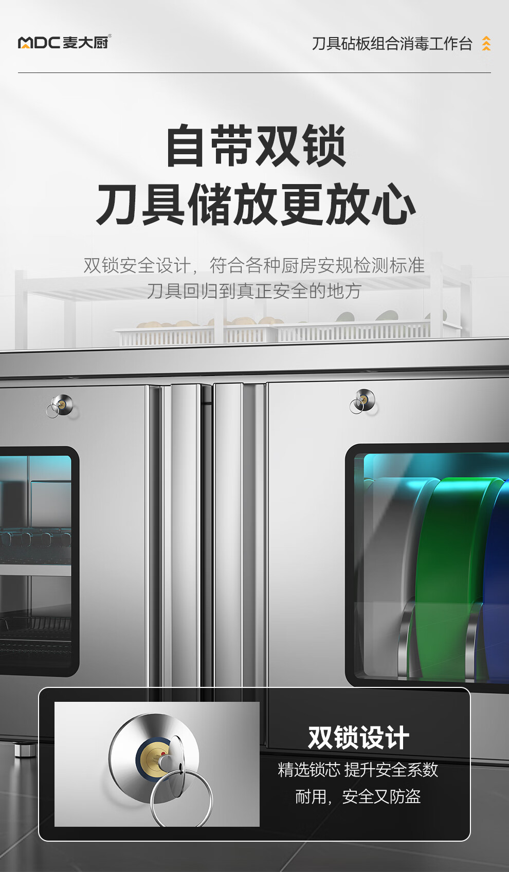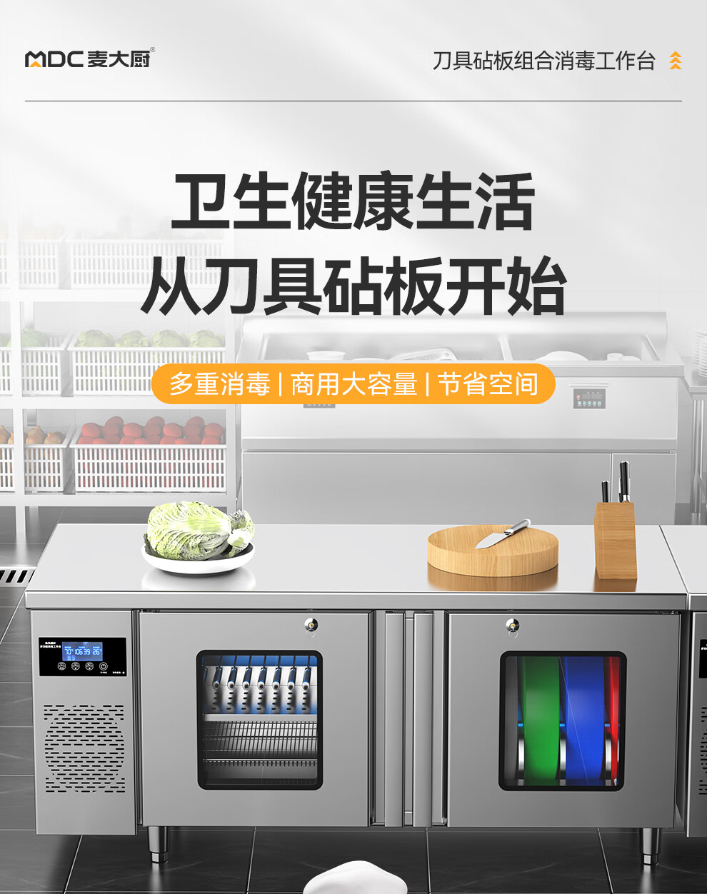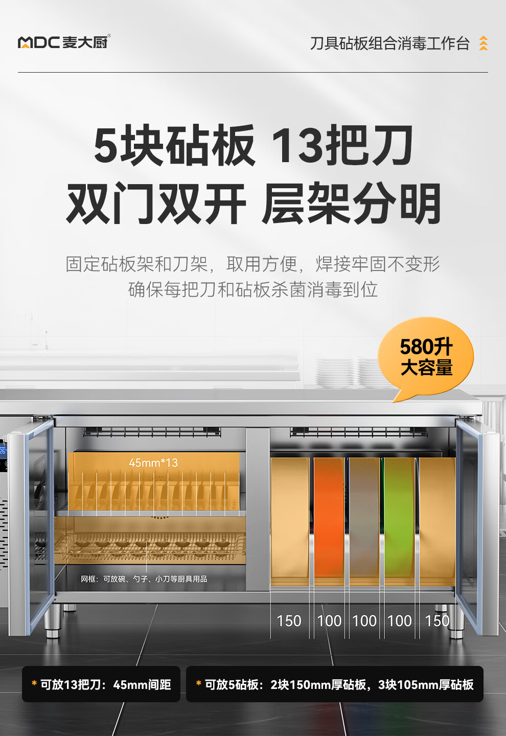 麥大廚雙門刀具砧板組合消毒工作臺1800A-13D-5Z(臭氧+紫外線+熱風)