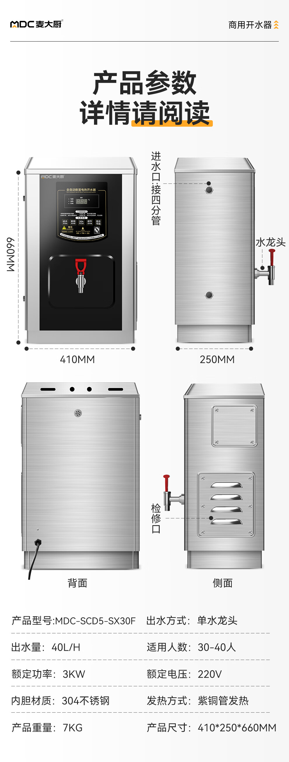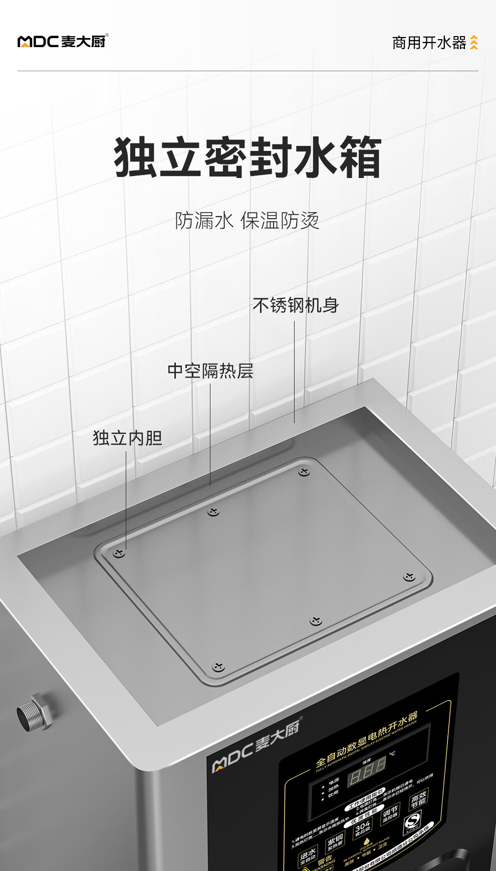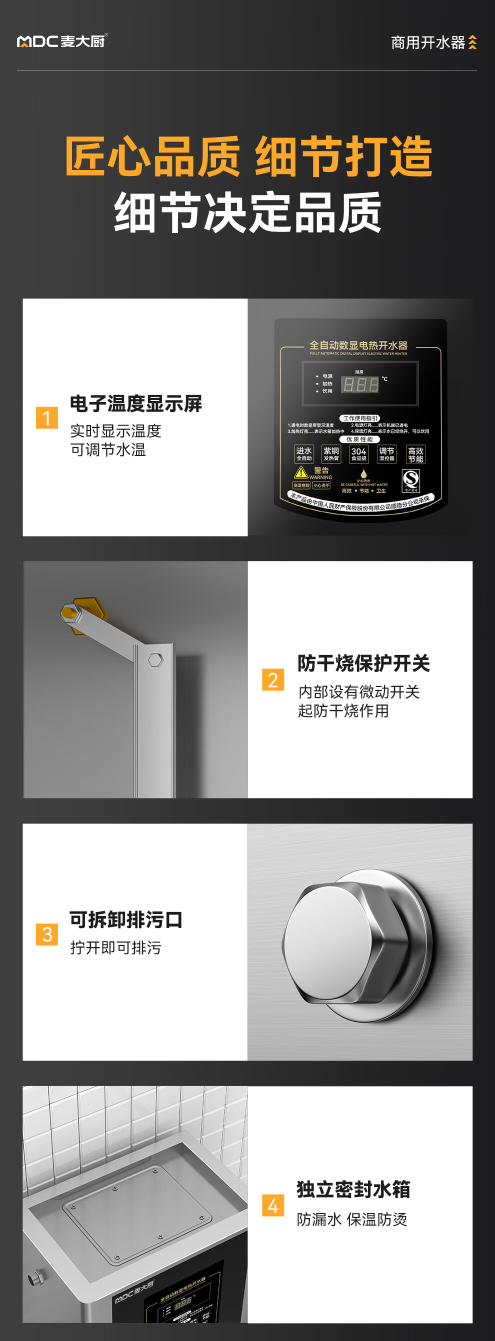 麥大廚黑鈦鋼數顯升級款速熱開水器商用MDC-SCD5-SX30F