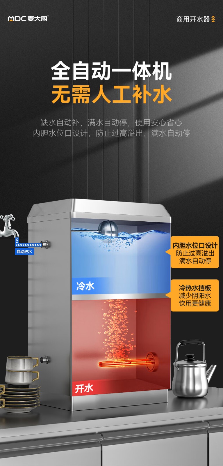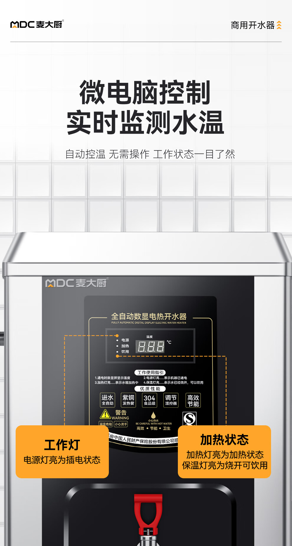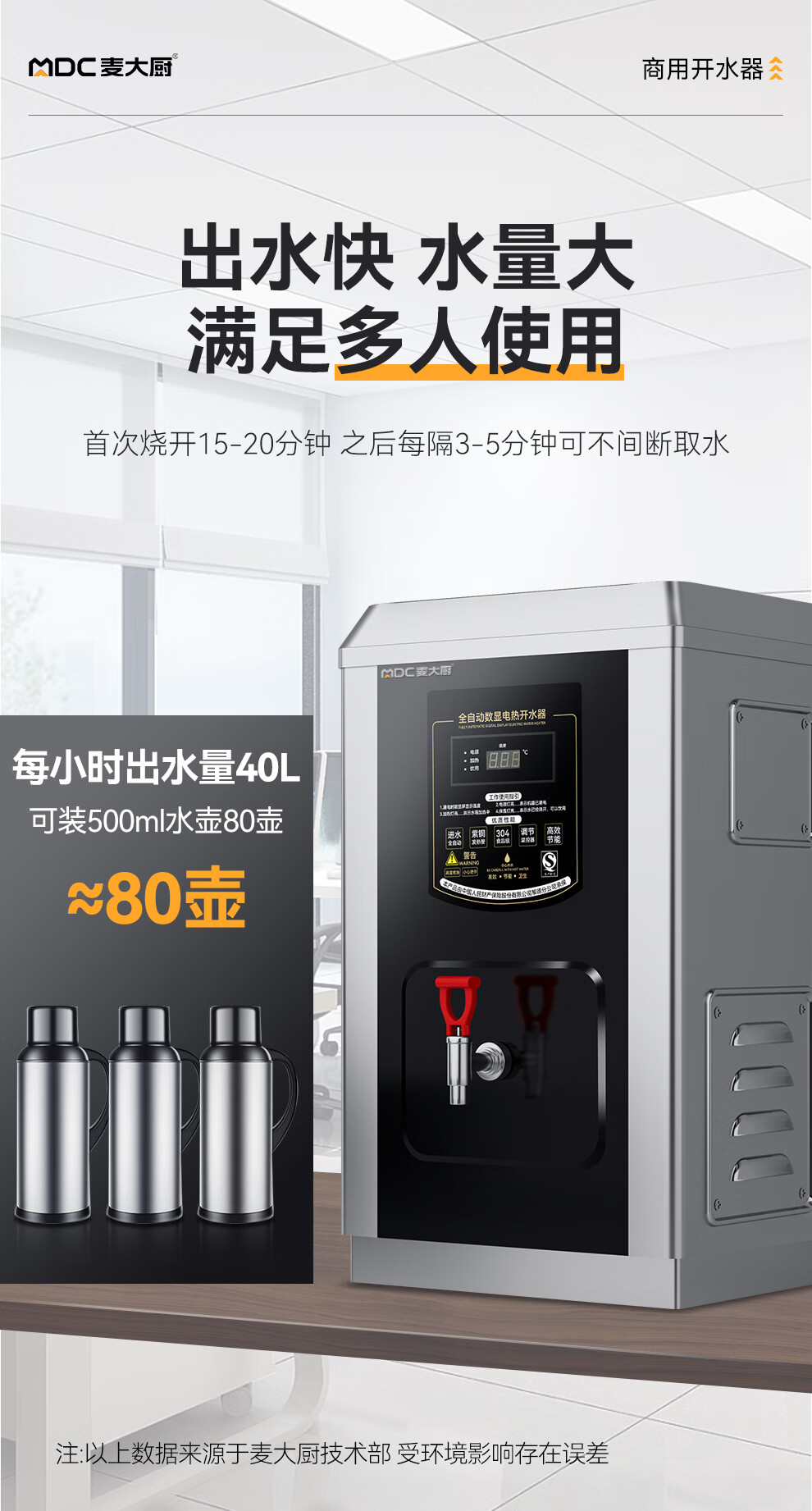 麥大廚黑鈦鋼數顯升級款速熱開水器商用MDC-SCD5-SX30F