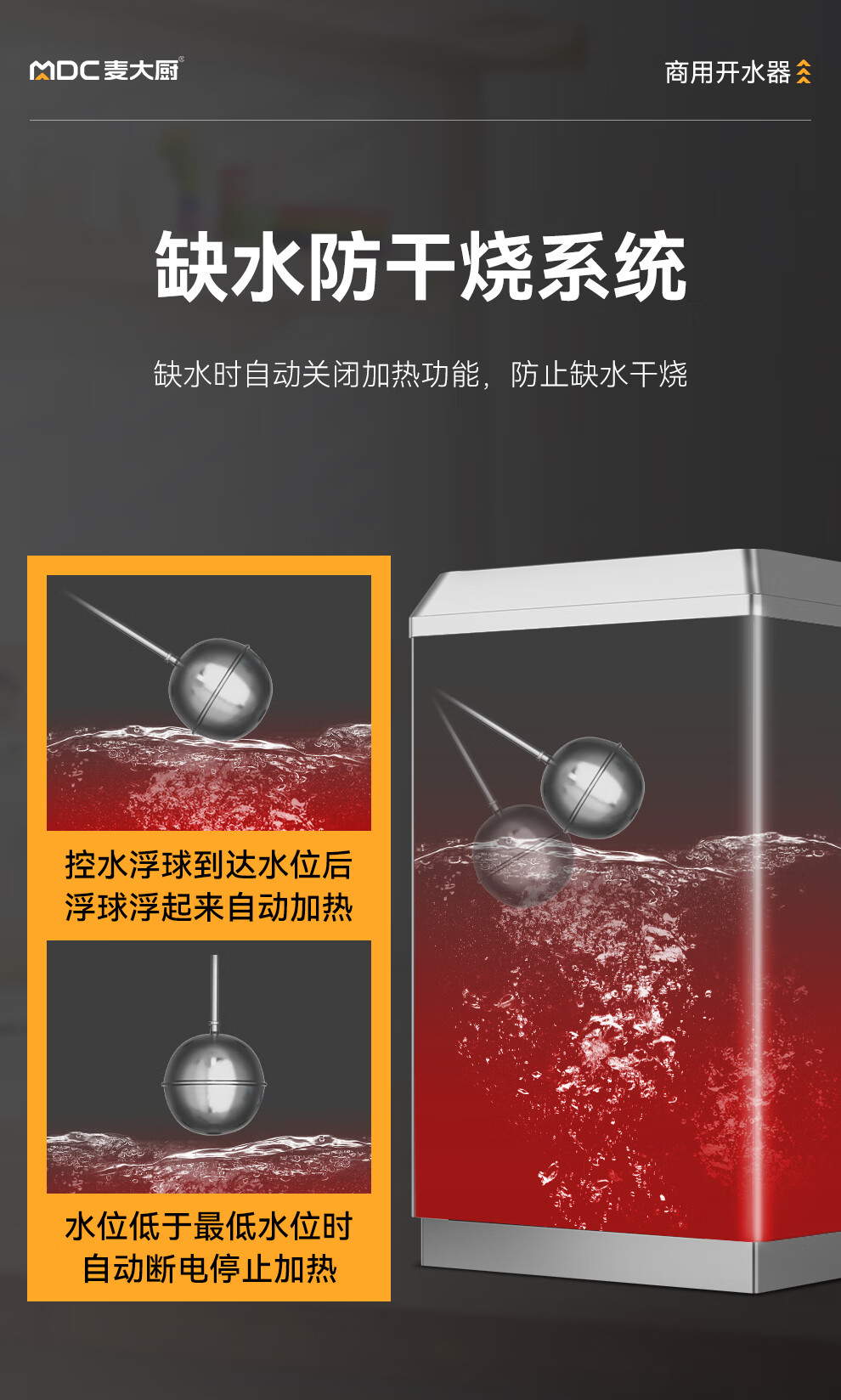 麥大廚黑鈦鋼數顯升級款速熱開水器商用120-210L