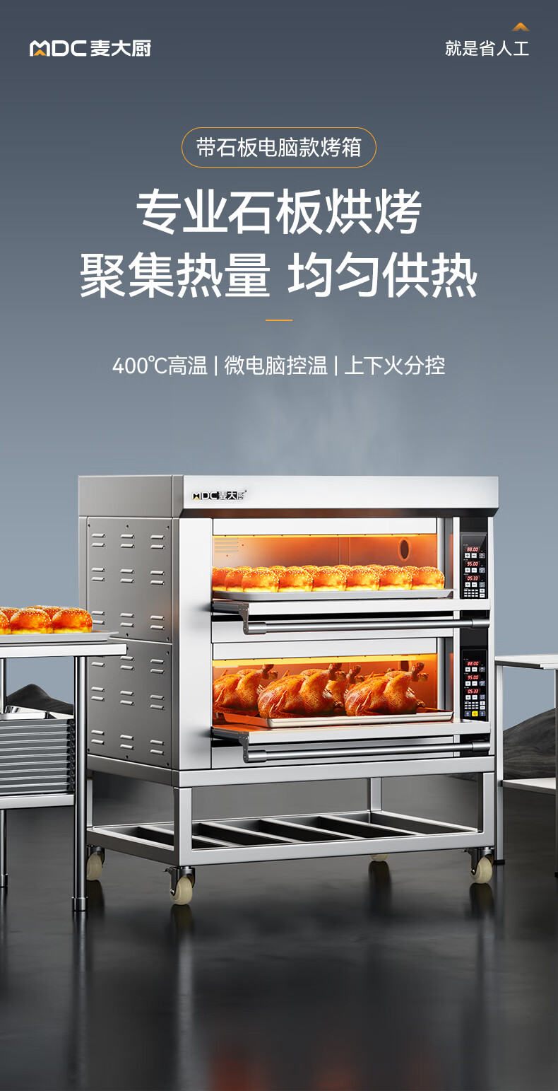 麥大廚豪華款兩層四盤石板加熱智能控溫烤箱13.2KW