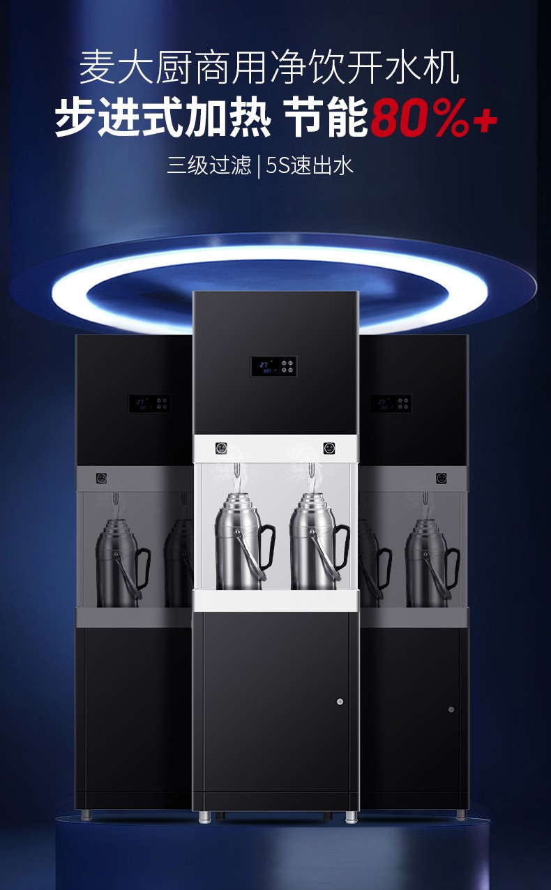 麥大廚背靠款三級過濾二開90L步進(jìn)式商用開水機(jī)