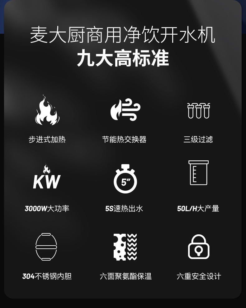麥大廚背靠款三級過濾二開130L步進式商用開水機