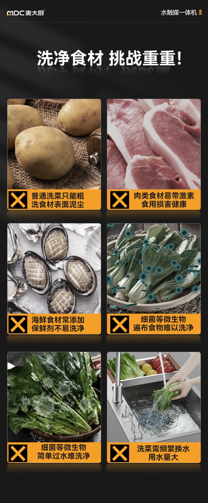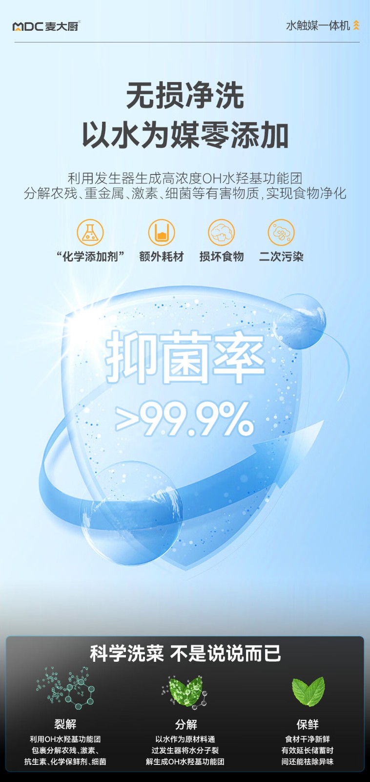 麥大廚1.0m單槽壁掛式水觸媒凈化清洗一體機商用