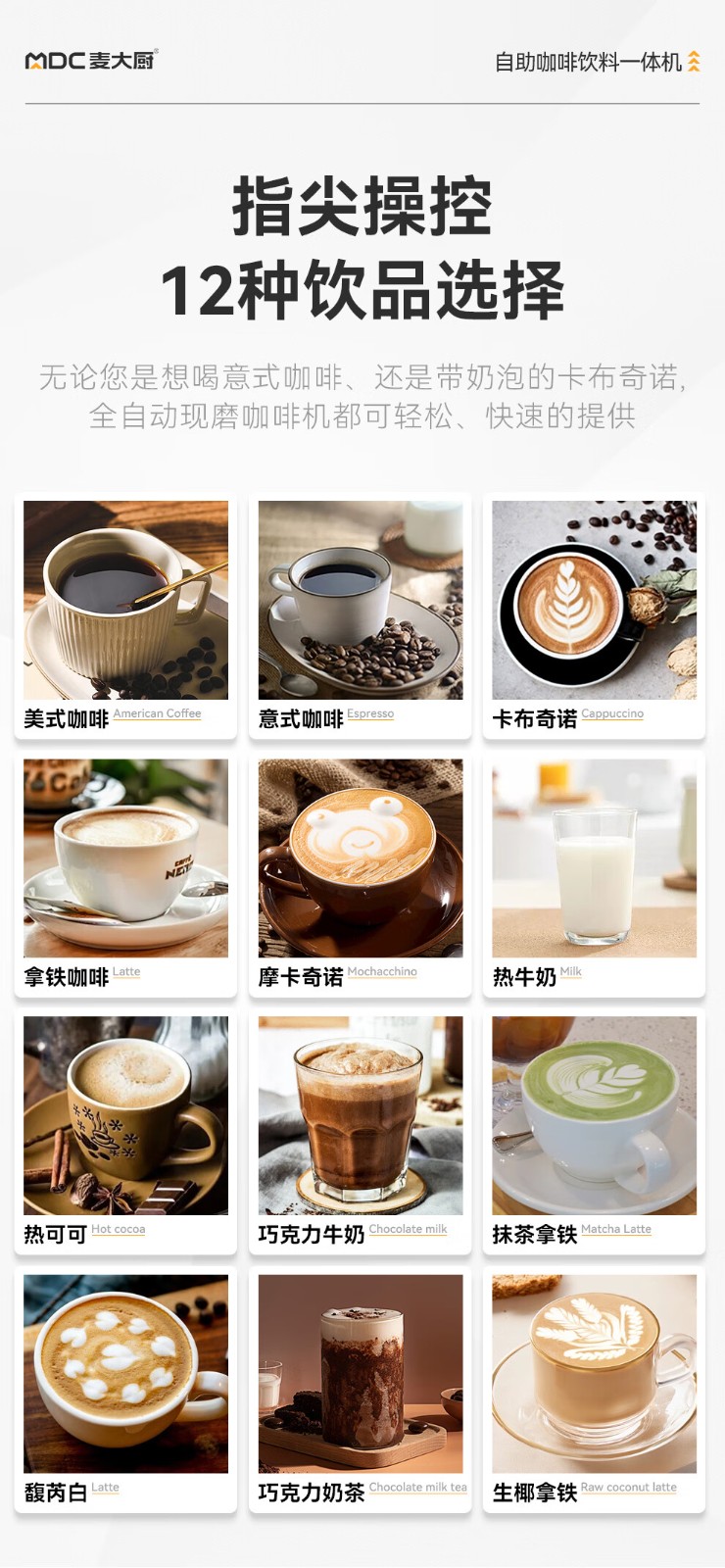 麥大廚單熱臺式無人自助商用現(xiàn)磨速溶咖啡飲料一體機