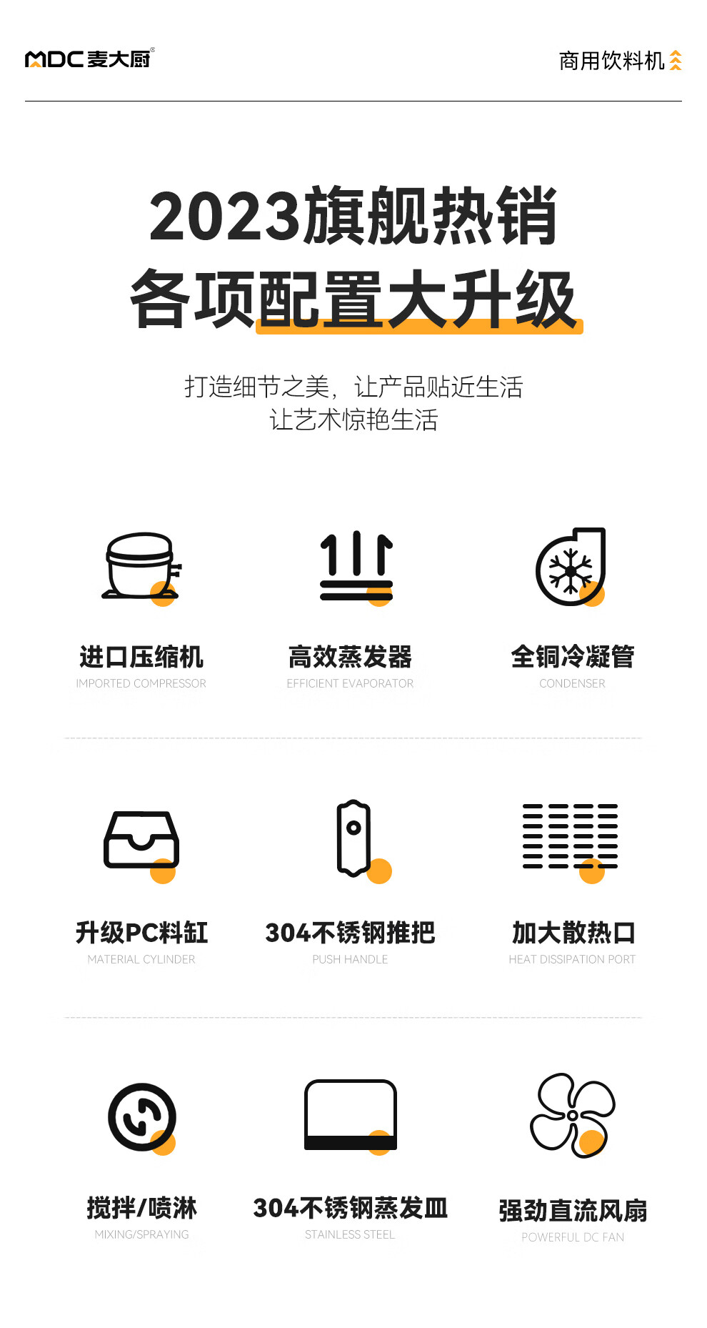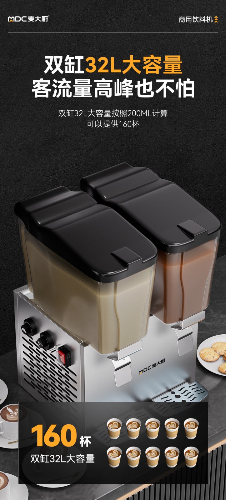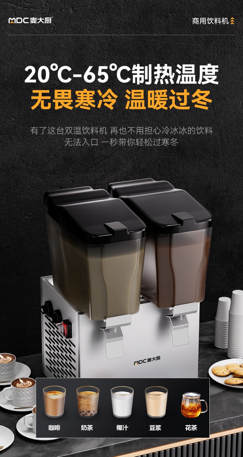 麥大廚220V標準款雙缸冷熱攪拌式飲料機商用235W