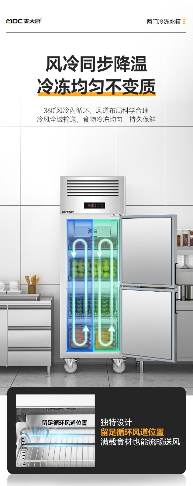 麥大廚經濟款兩門風冷立式冷凍柜512W