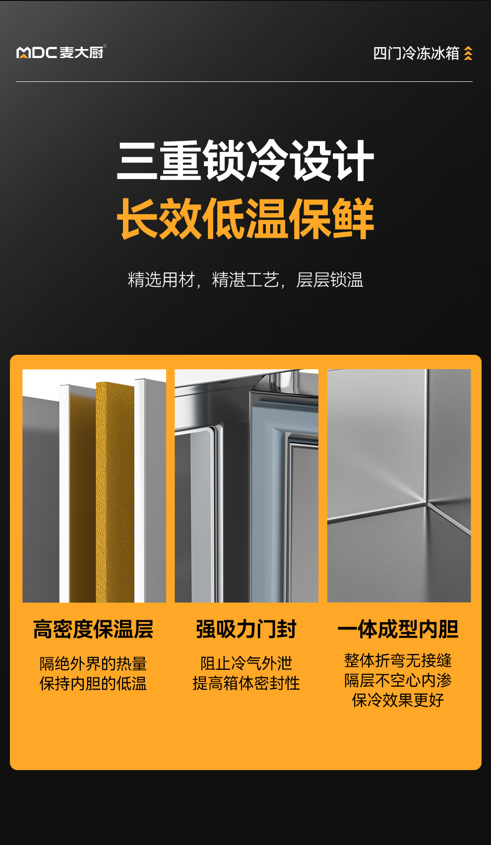 麥大廚經(jīng)濟款四門風(fēng)冷立式冷凍柜840W