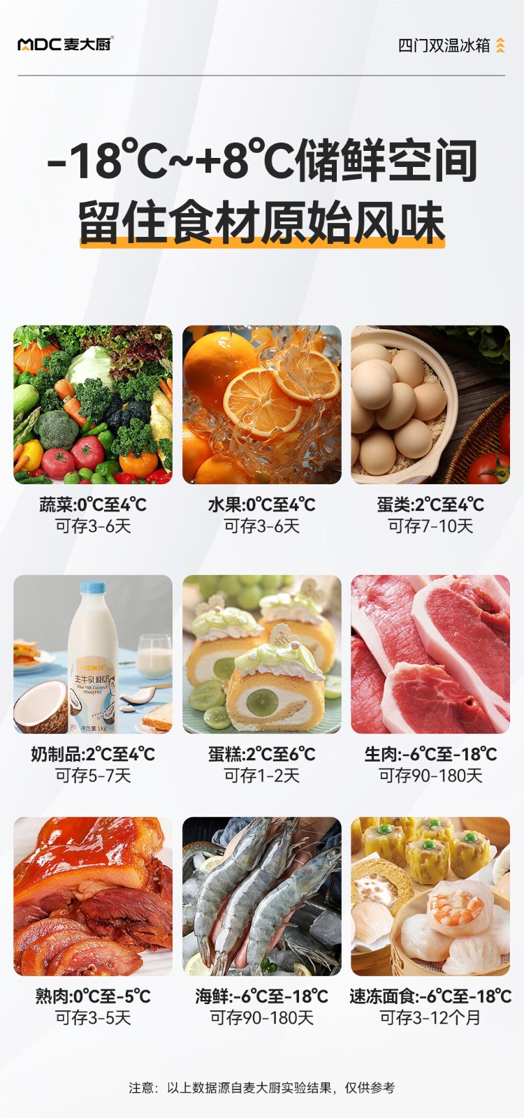冷凍溫度范圍:0℃~-18℃