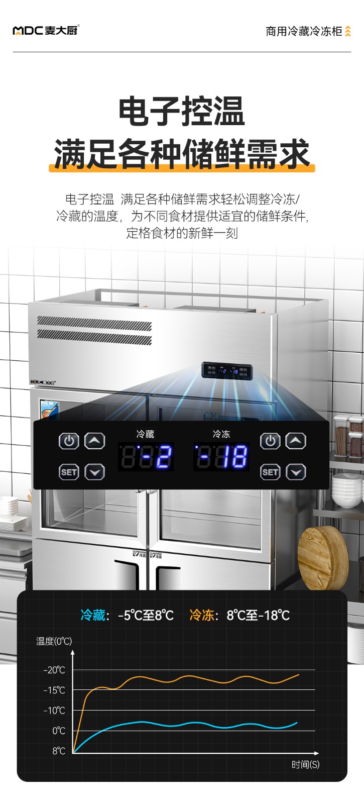 冷凍溫度范圍:8℃~-18℃