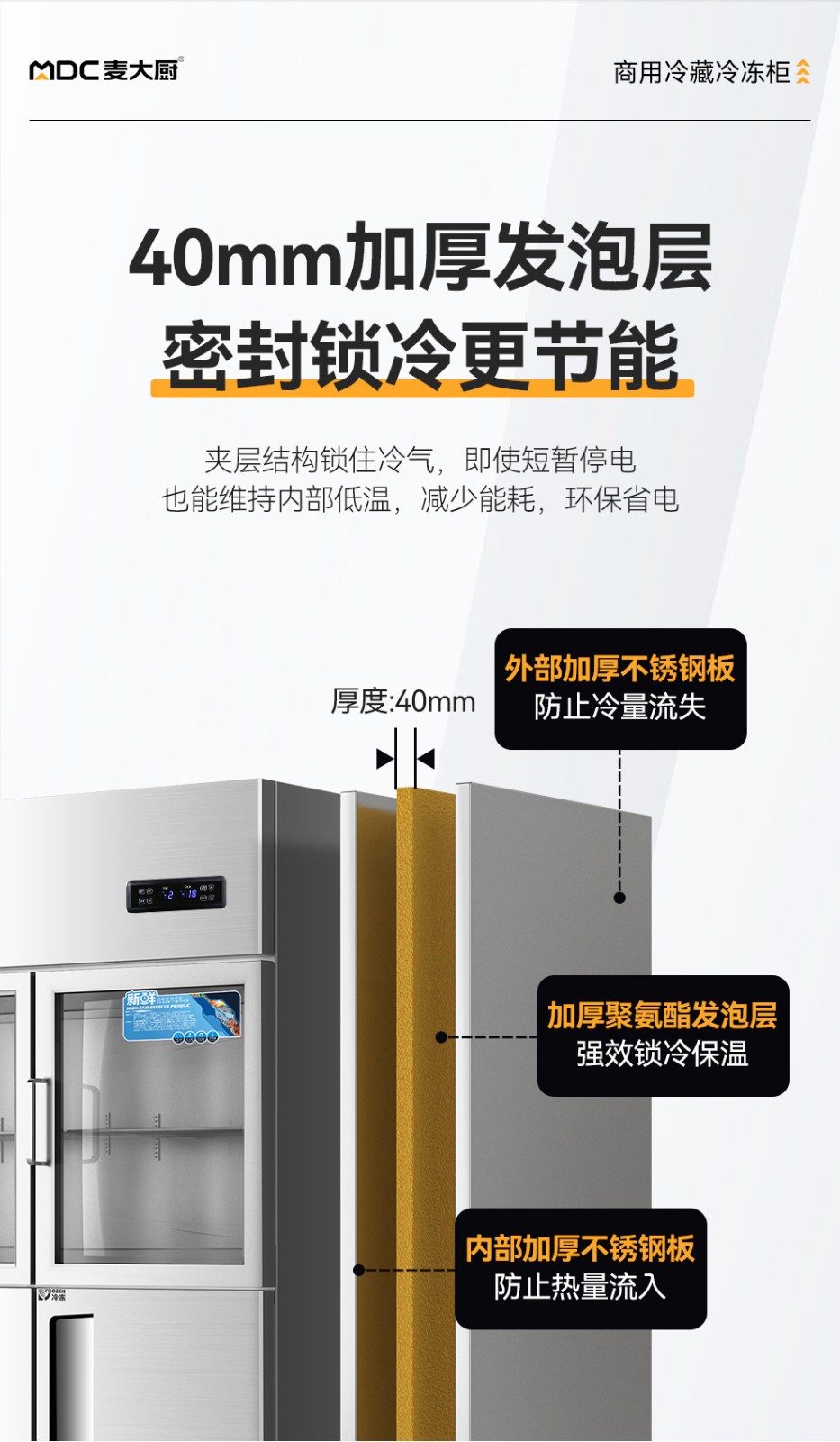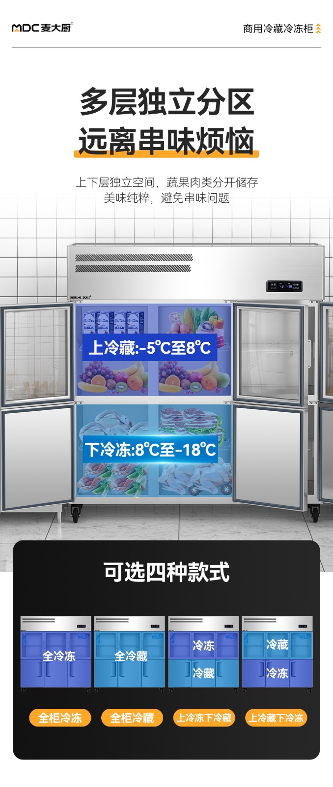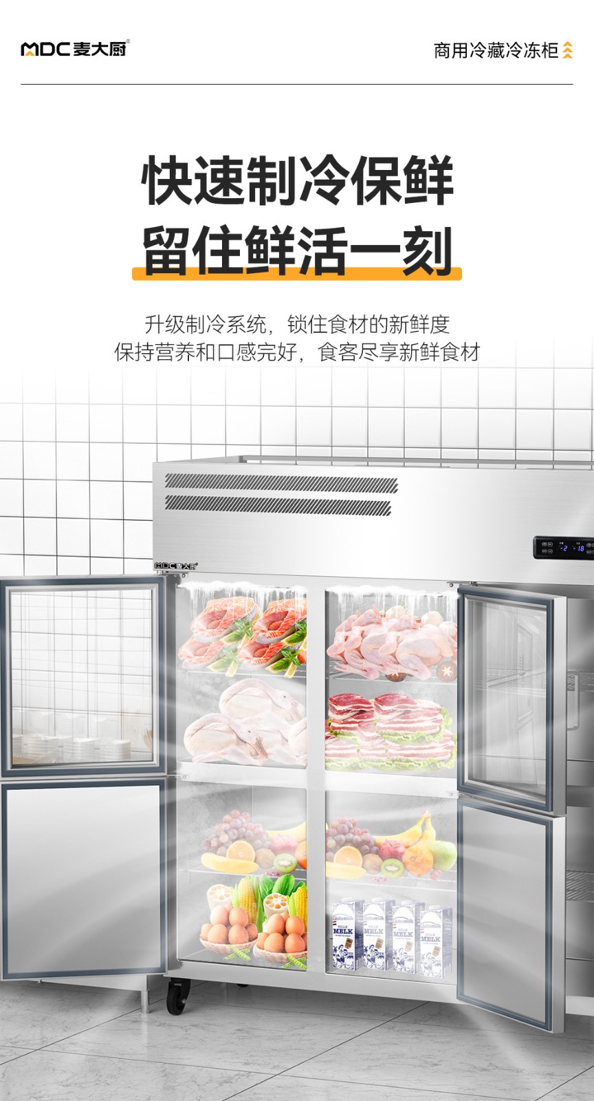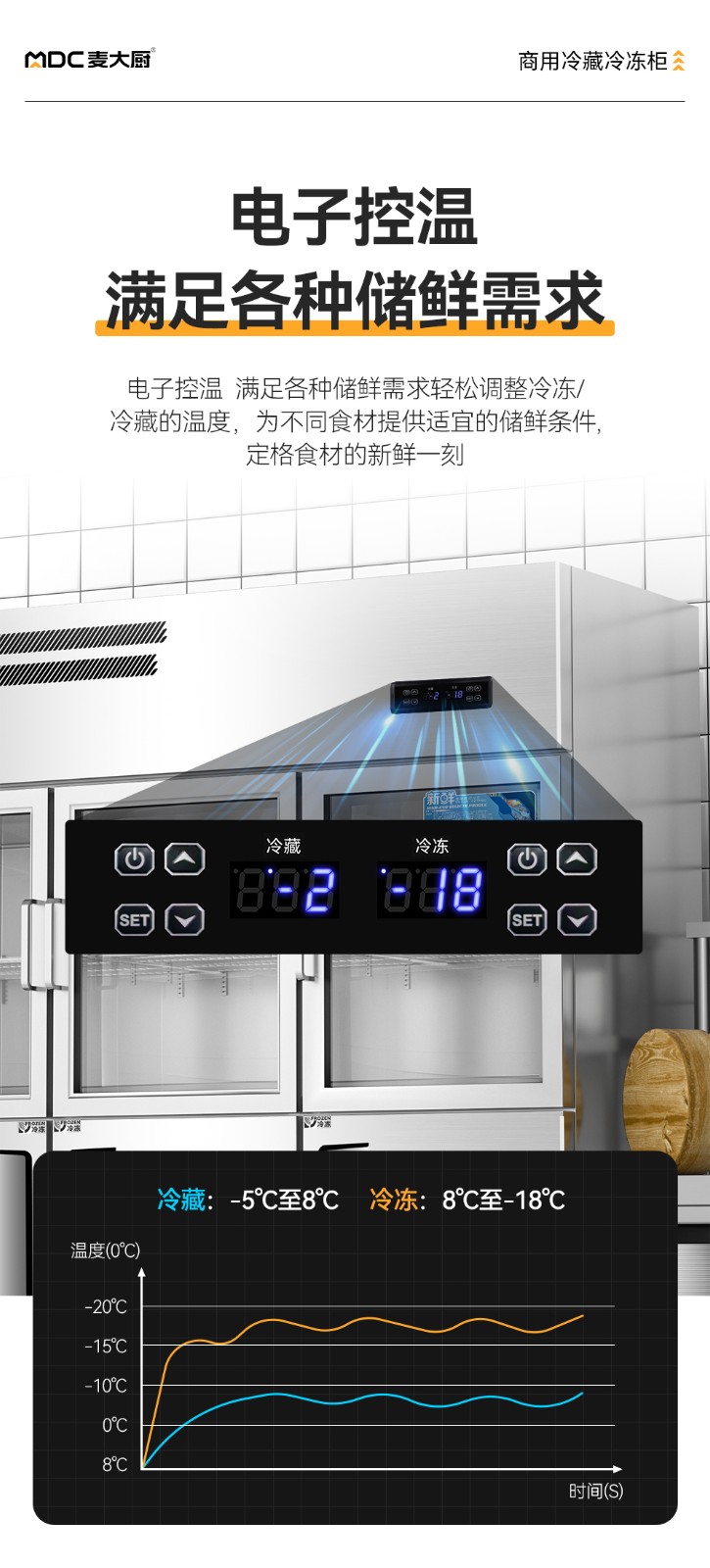 麥大廚標準款六門直冷上玻璃立式雙溫冰柜