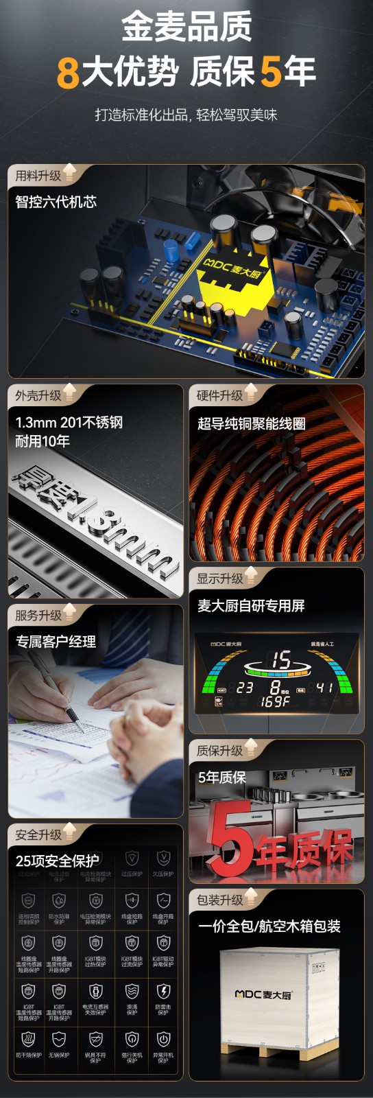 麥大廚金麥款201材質電磁單頭單尾小炒爐8kw
