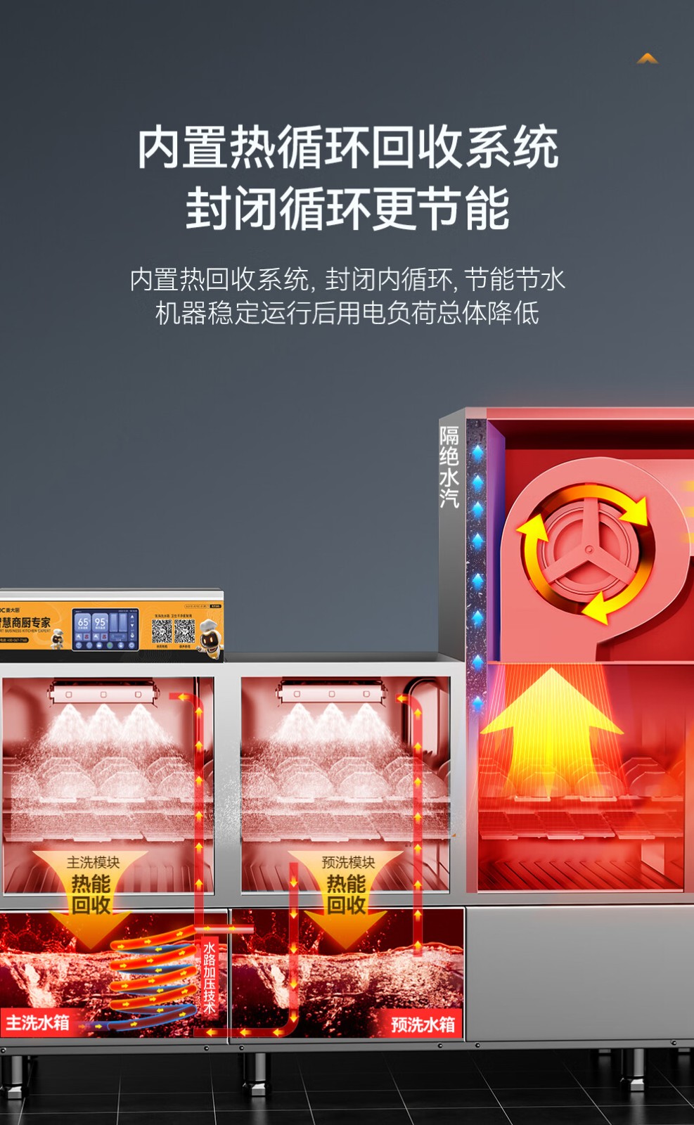 麥大廚金麥款平放式觸屏熱回收3.5m單缸單噴單烘洗碗機