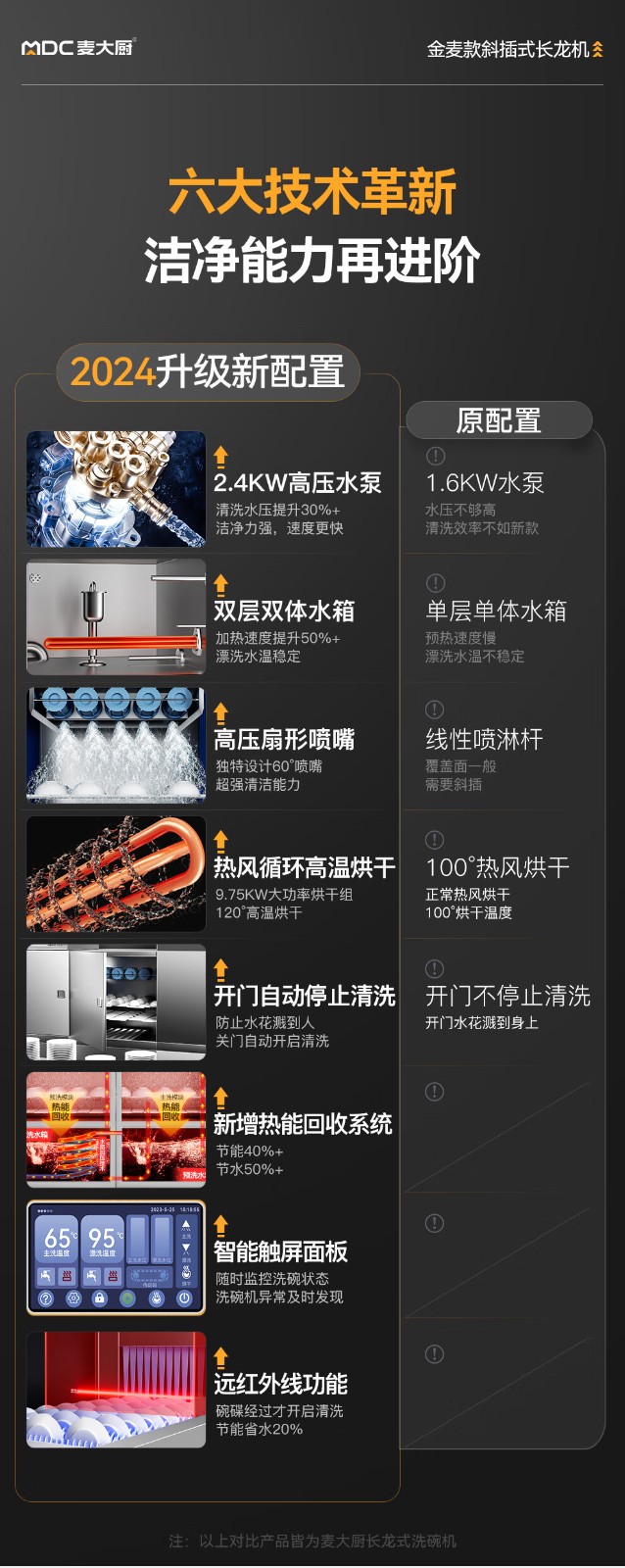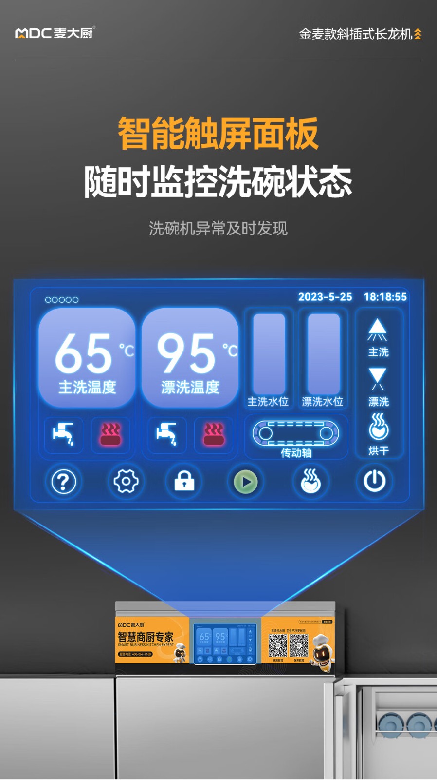 麥大廚金麥款斜插式觸屏熱回收2.95m雙缸雙噴洗碗機