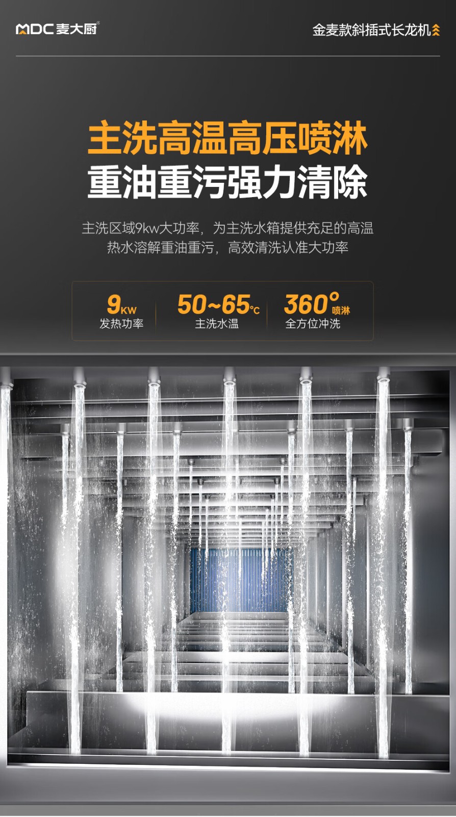 麥大廚金麥款斜插式觸屏熱回收4.45m雙缸雙噴單烘洗碗機