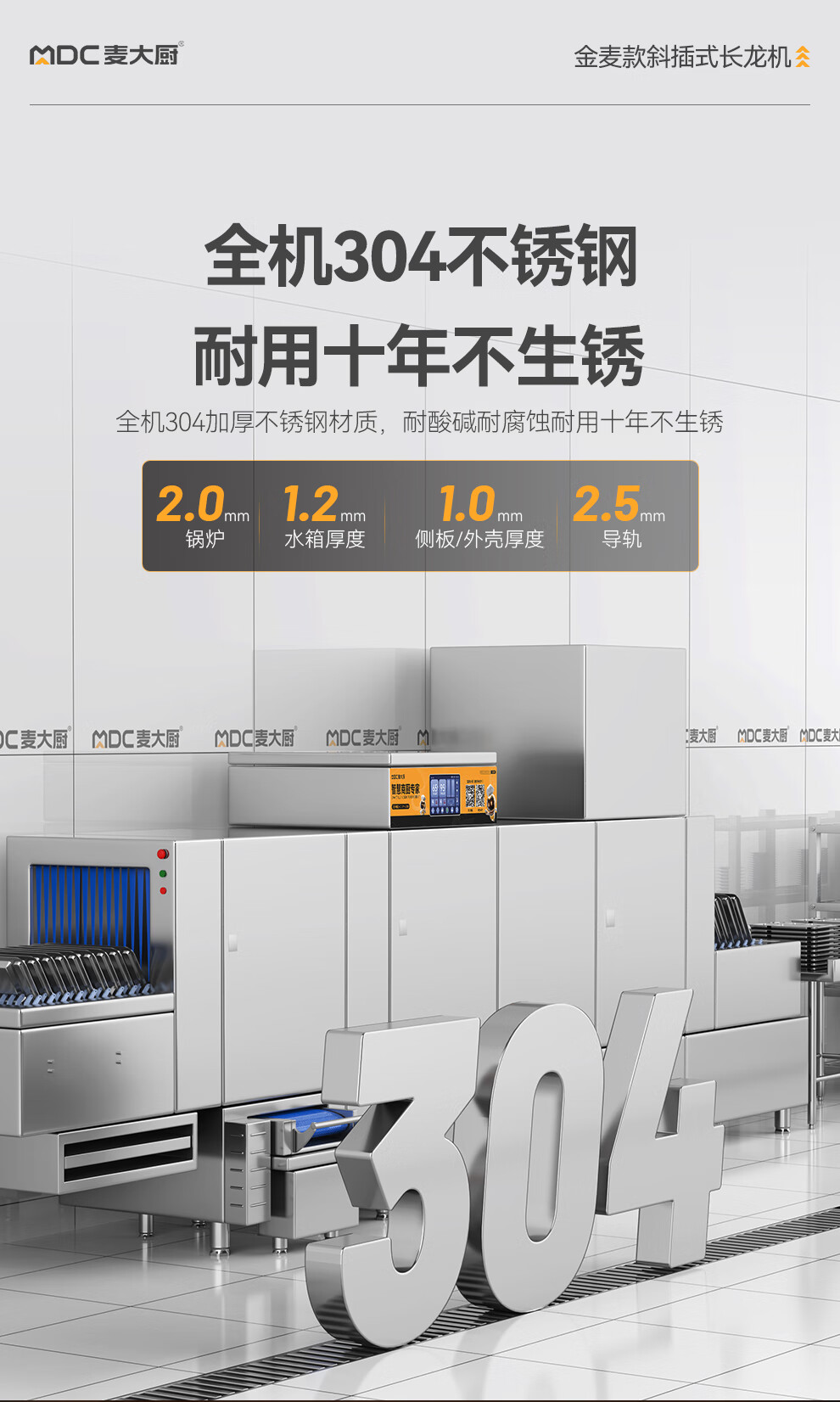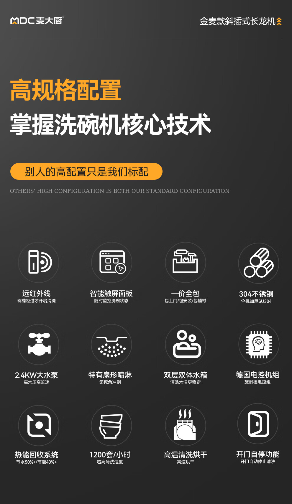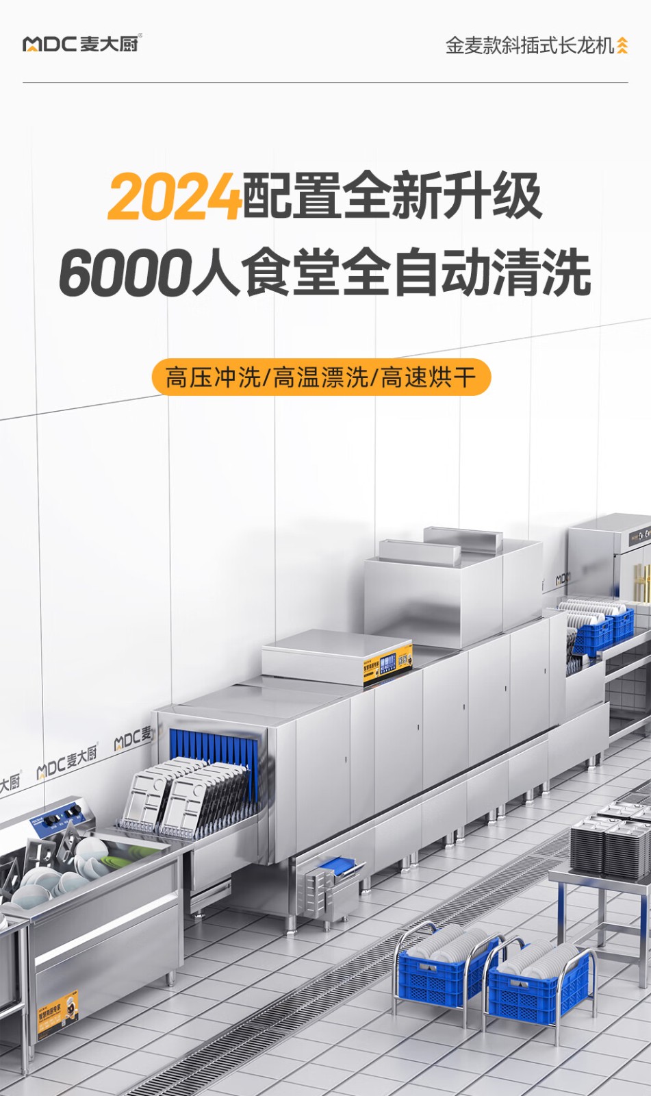 麥大廚金麥款斜插式觸屏熱回收5.85m三缸雙噴雙烘洗碗機(jī)