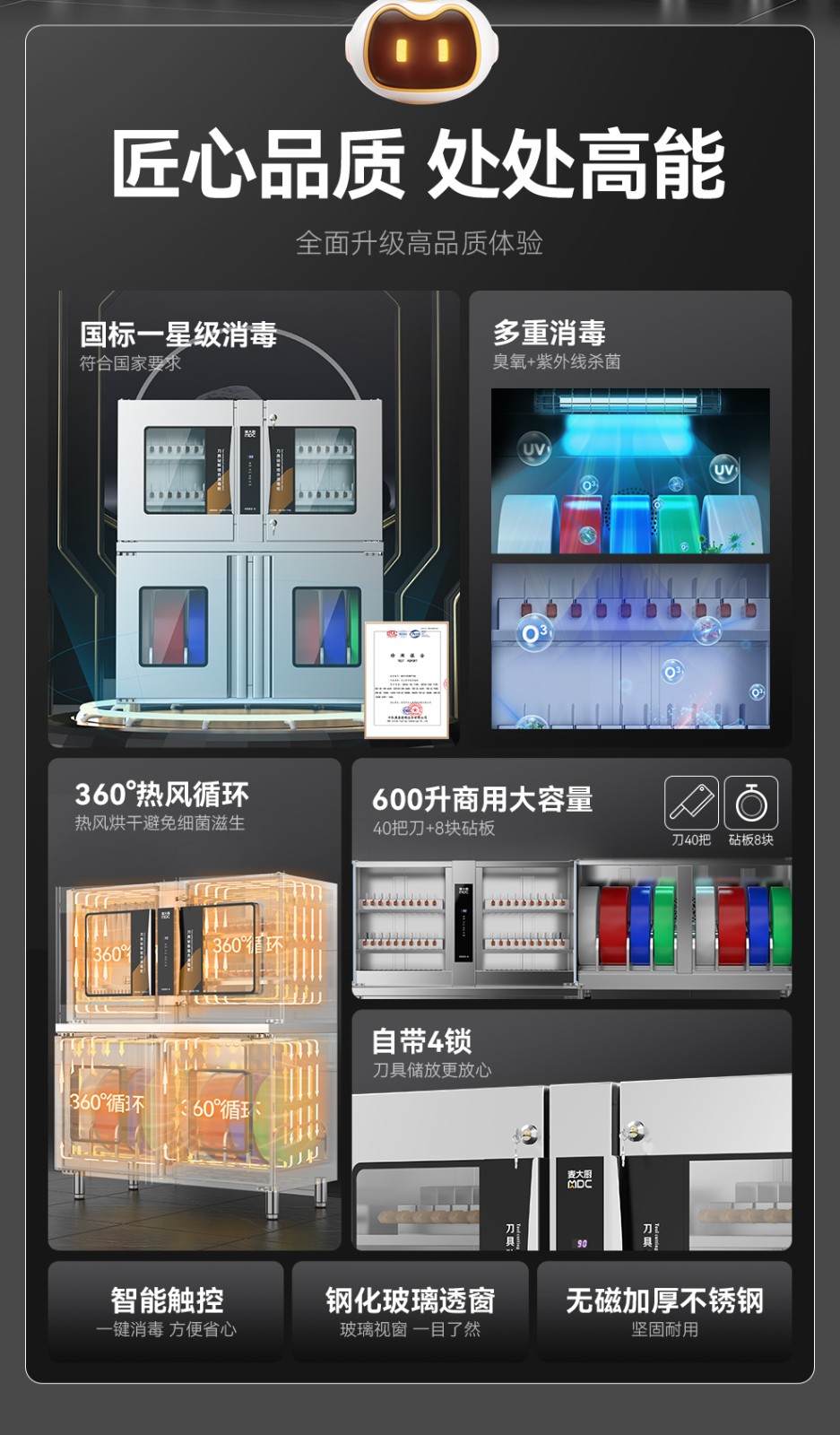 麥大廚智能款四門雙層刀具砧板組合臭氧紫外線熱風(fēng)循環(huán)消毒柜