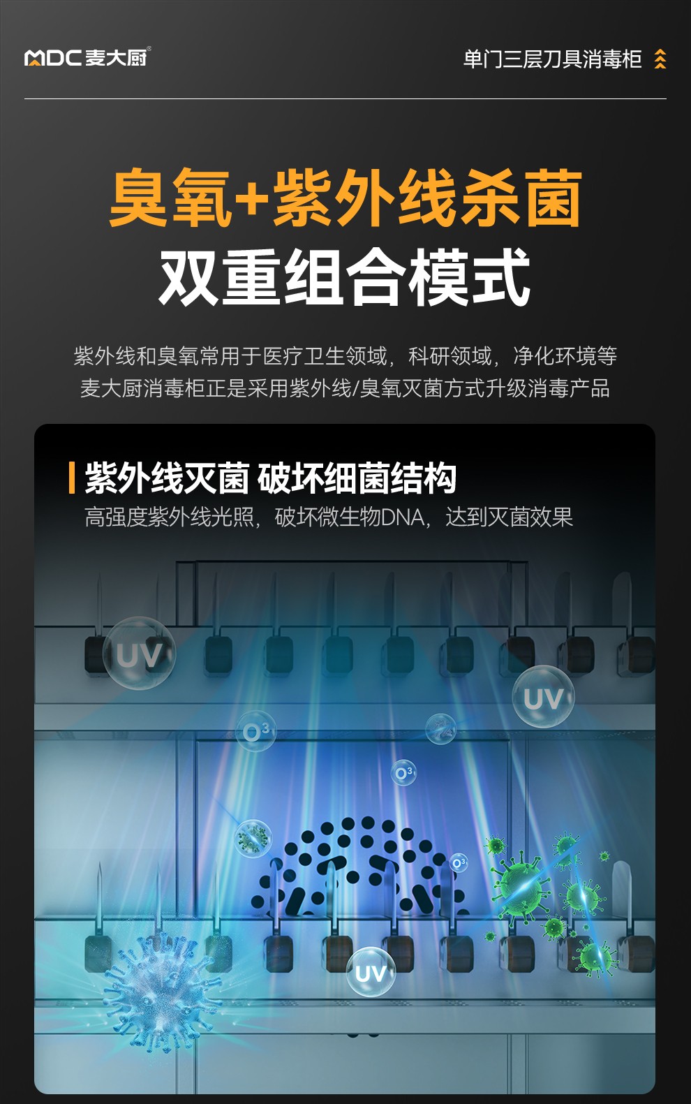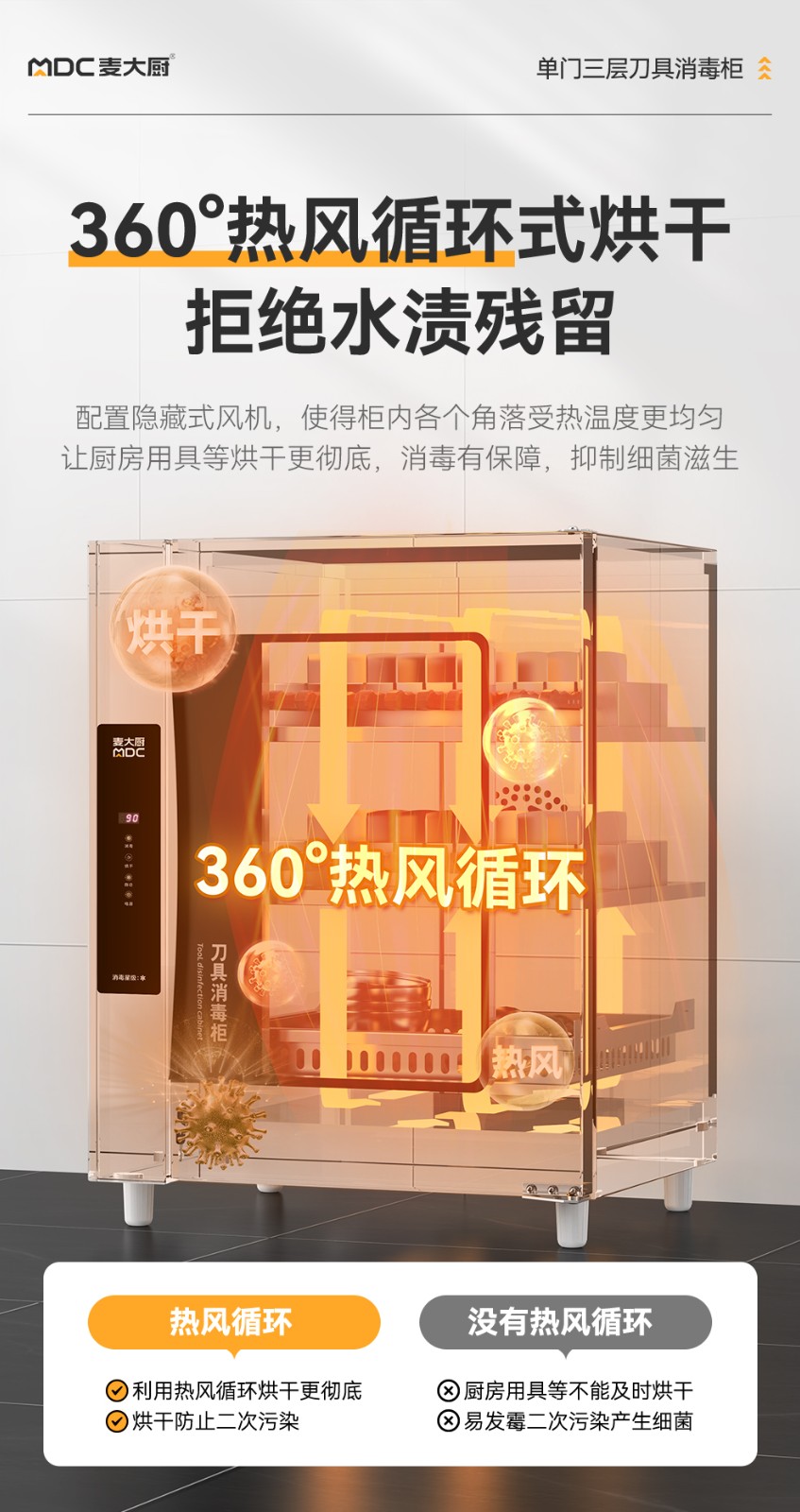 麥大廚智能款單門三層臭氧紫外線熱風循環消毒柜
