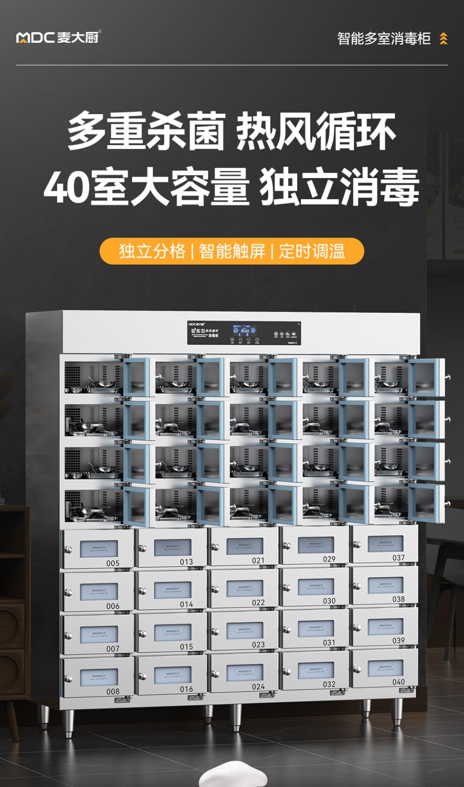 麥大廚40室智能觸屏型熱風(fēng)循環(huán)中溫消毒柜4.5KW