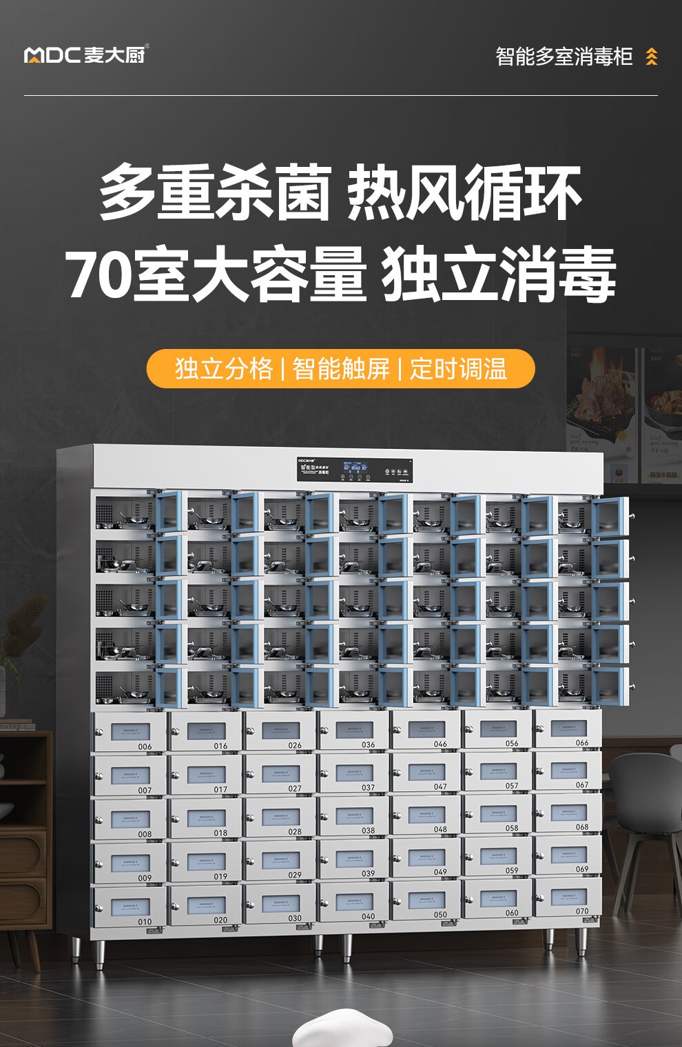 麥大廚70室智能觸屏型熱風循環中溫消毒柜6.6KW
