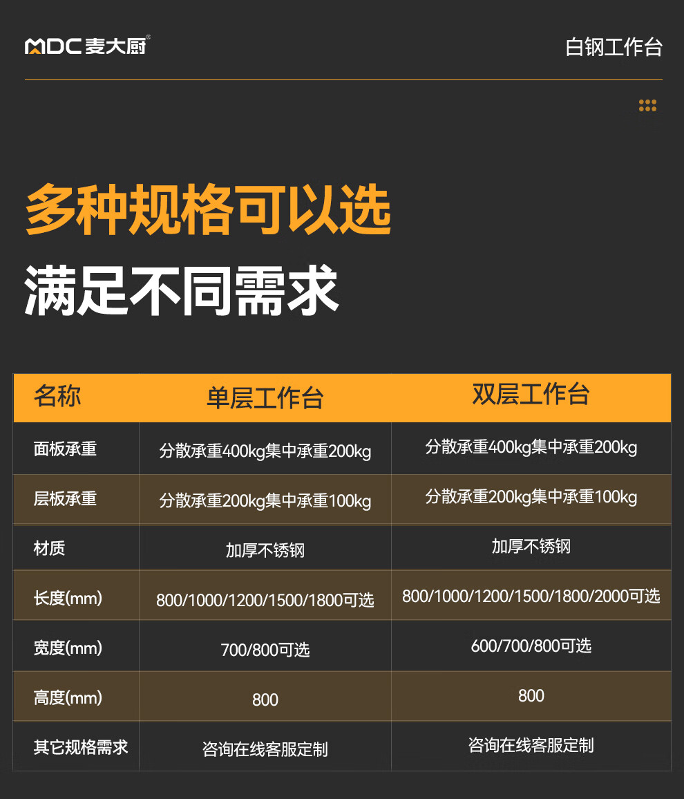 • 更多MDC商用雙層工作臺(tái)規(guī)格咨詢?cè)诰€客服