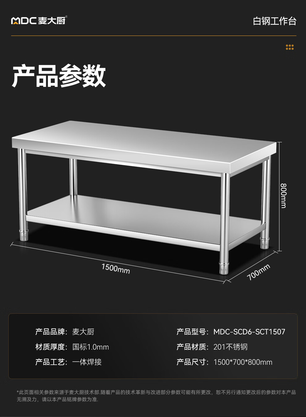 - 更多MDC商用雙層工作臺規格咨詢在線客服