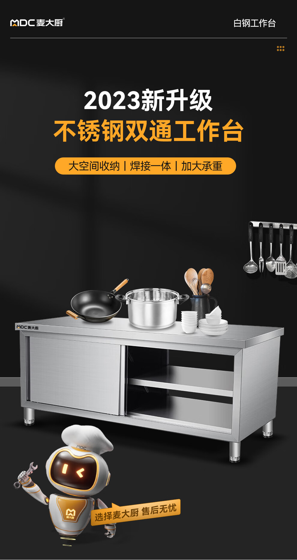 麥大廚1.2m升級(jí)款不銹鋼工作臺(tái)雙通工作臺(tái)帶靠背