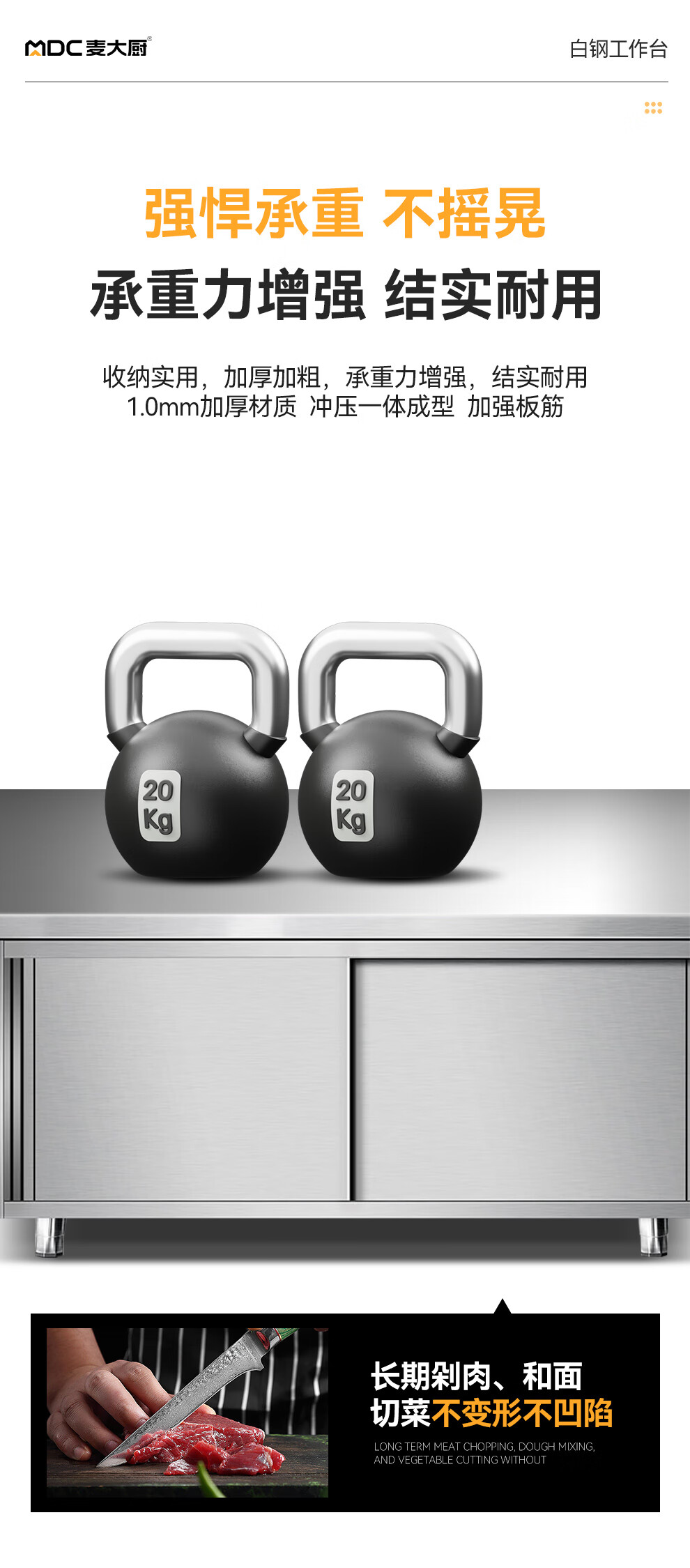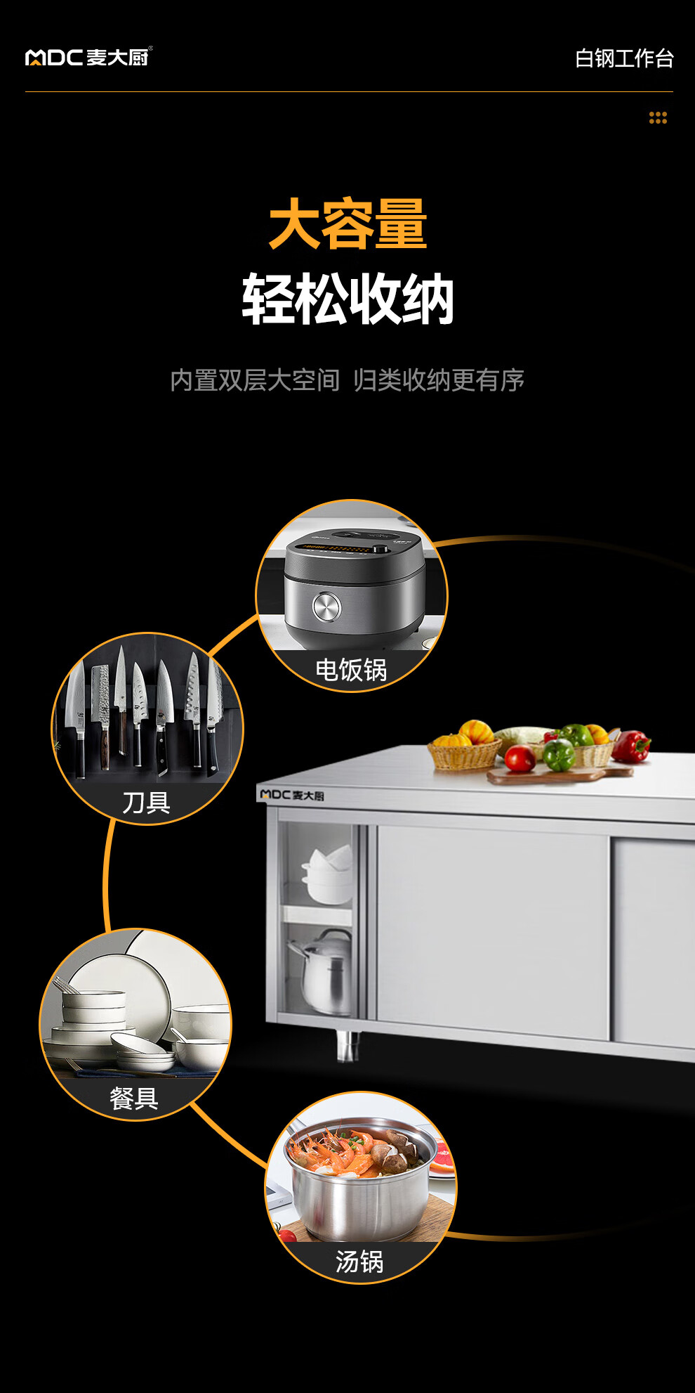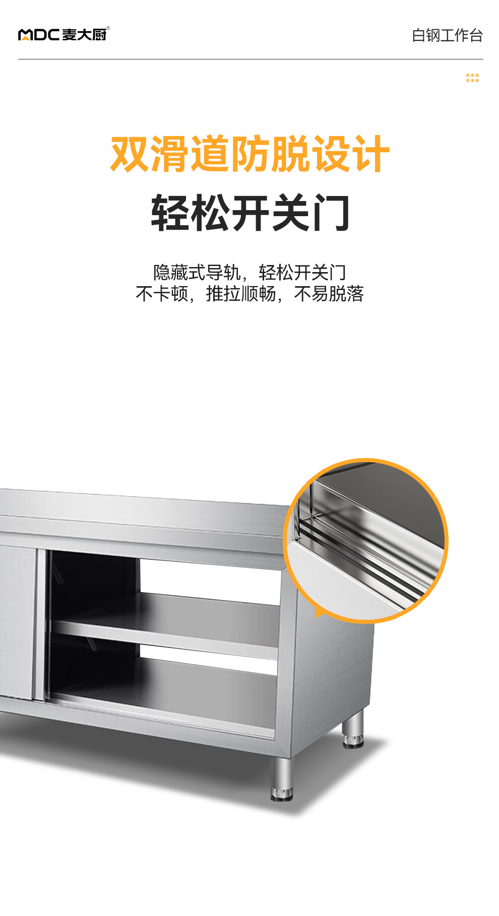 麥大廚1.5m升級款不銹鋼工作臺雙通工作臺帶靠背