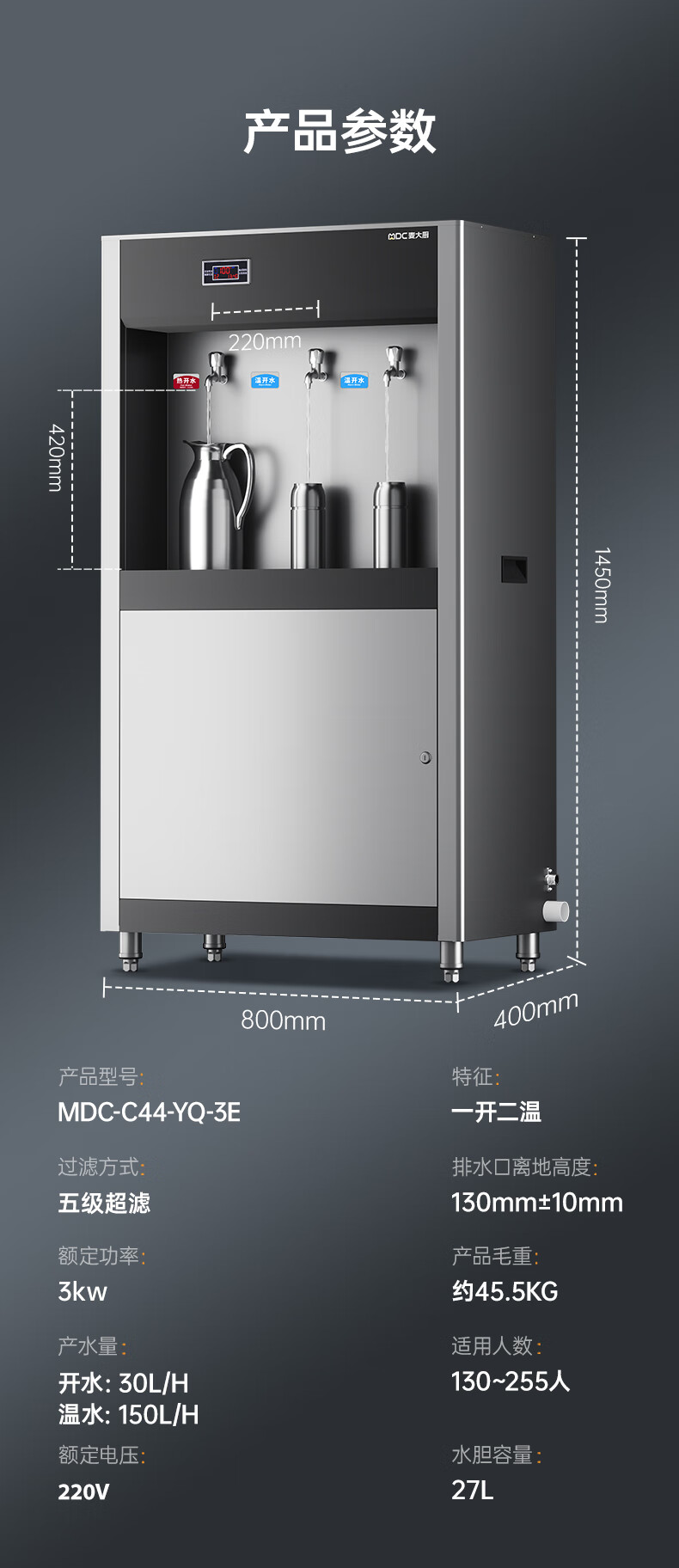 麥大廚3KW柜式龍頭飲水機一開二溫快接五級超濾直飲機