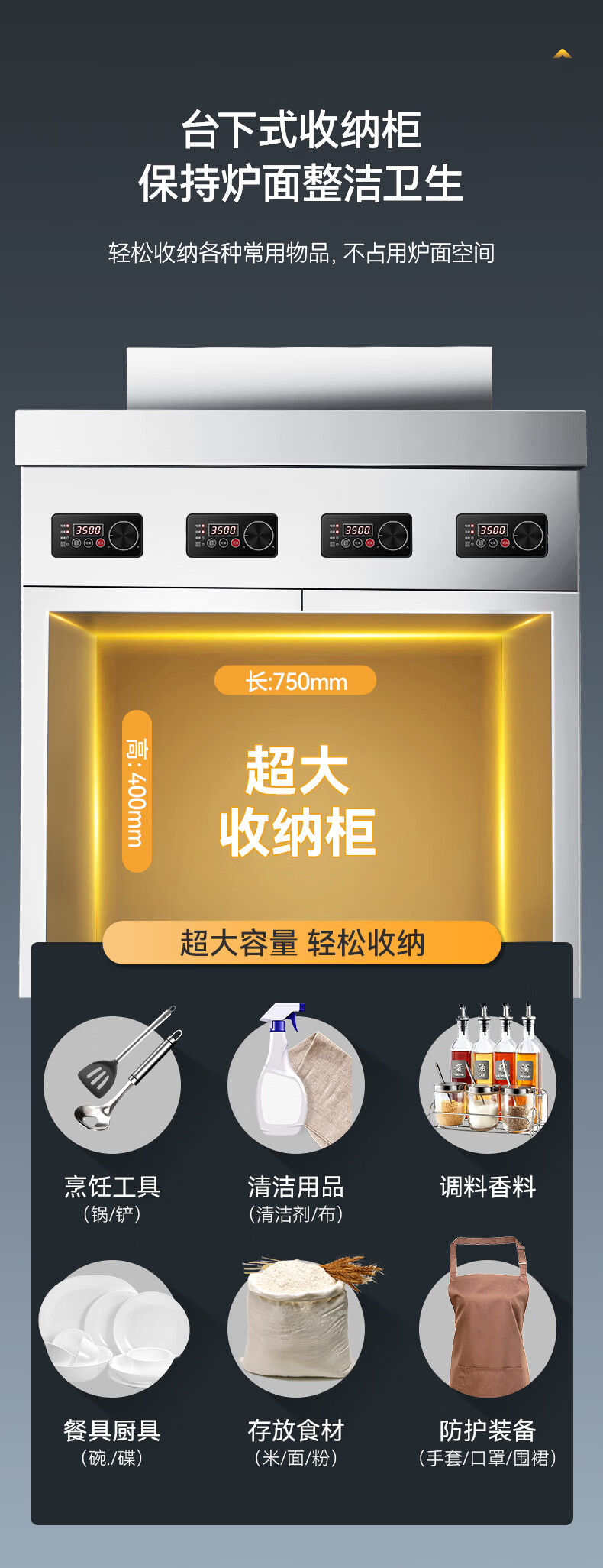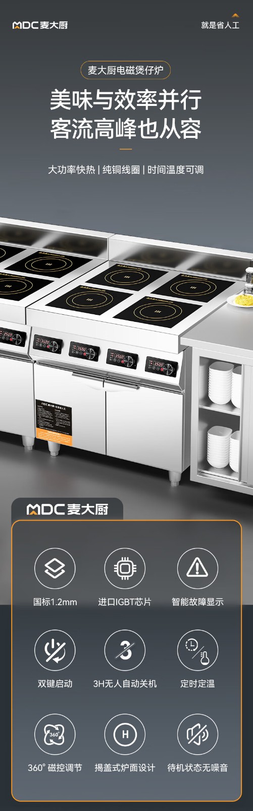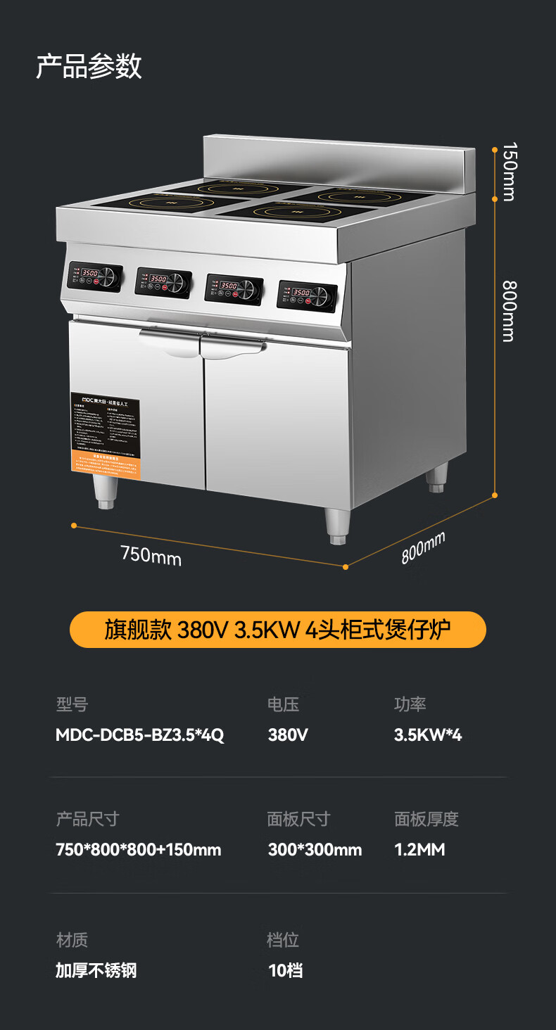 麥大廚商用多頭電磁爐旗艦款四頭柜式煲仔爐3.5KW