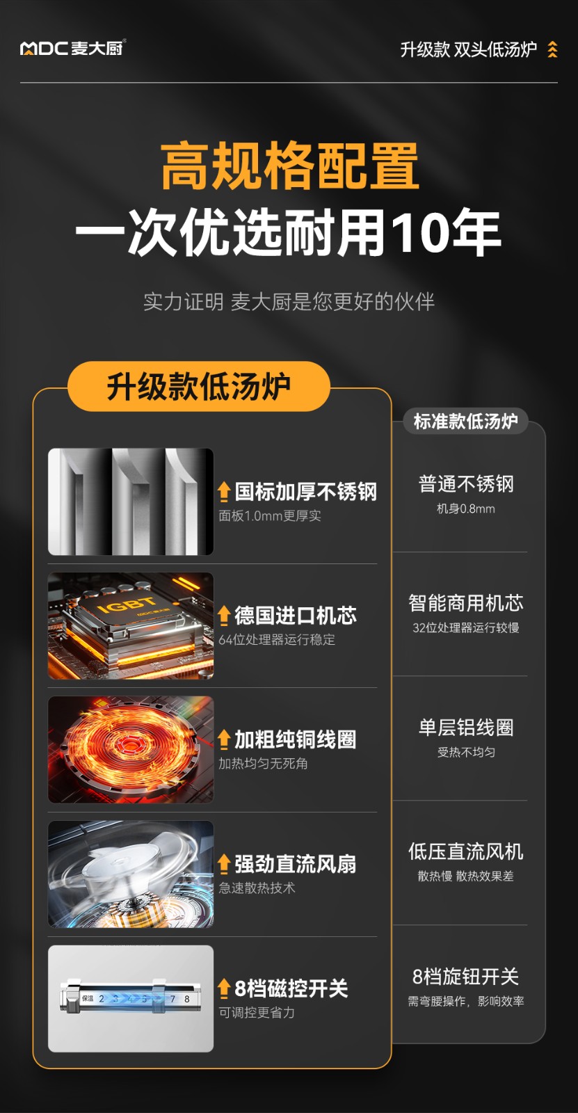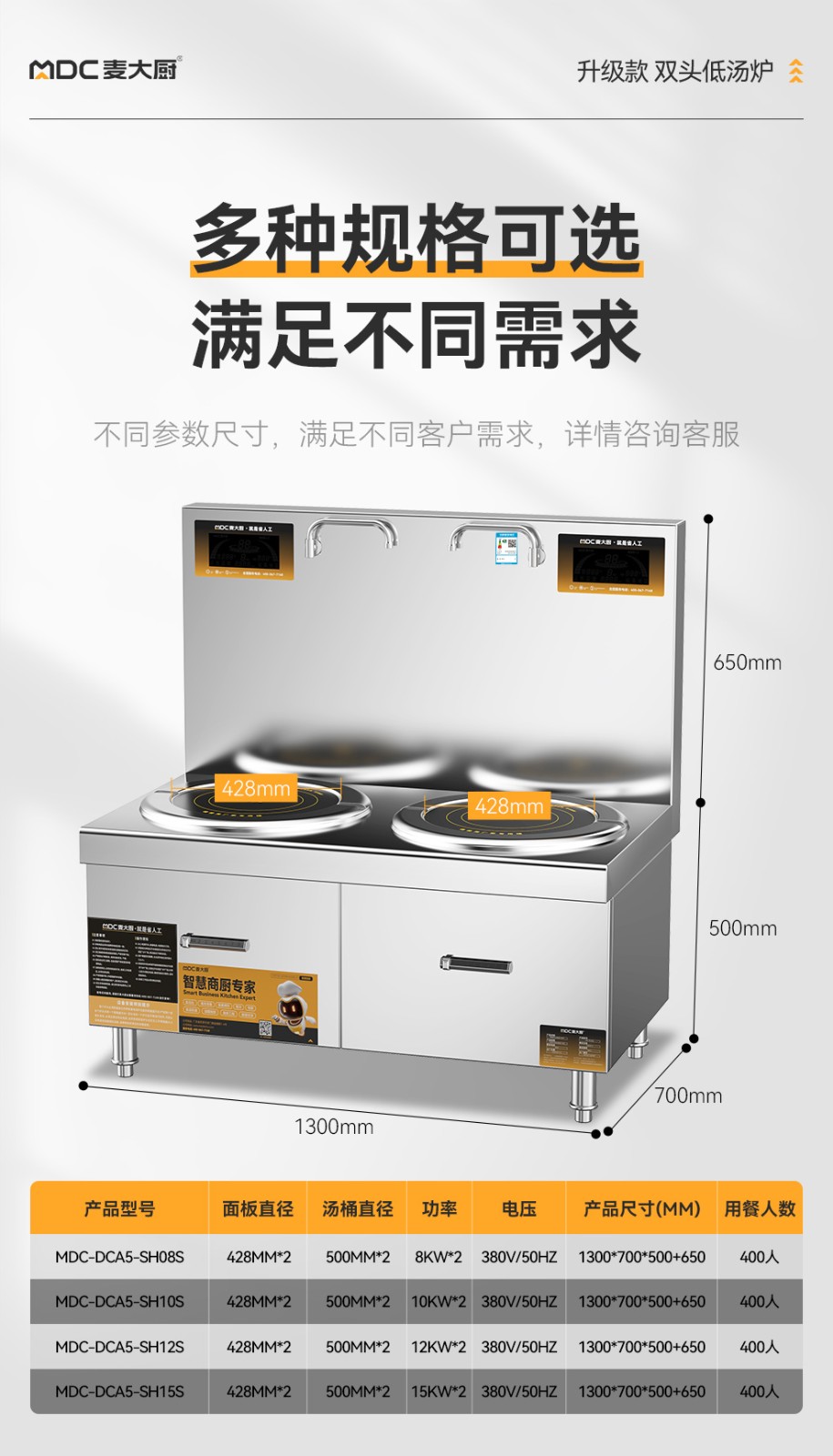 麥大廚商用升級款雙頭低湯爐矮仔爐12KW