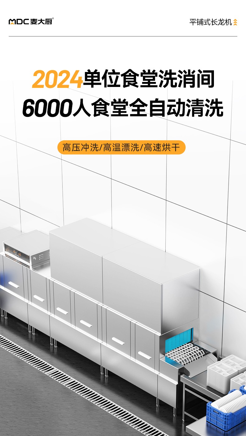 麥大廚5.7m豪華款平放式雙缸雙噴淋雙烘干商用企業洗碗機