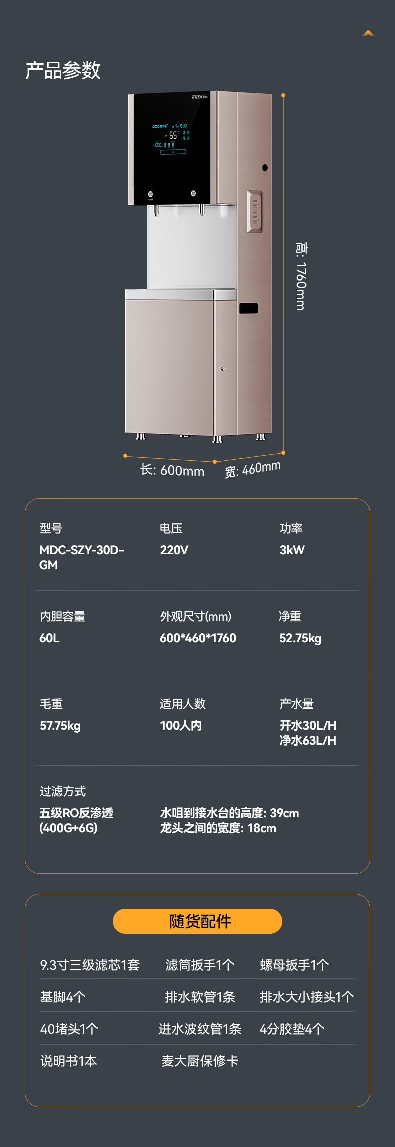 麥大廚 3KW金麥款一開一凈五級RO反滲透直飲機