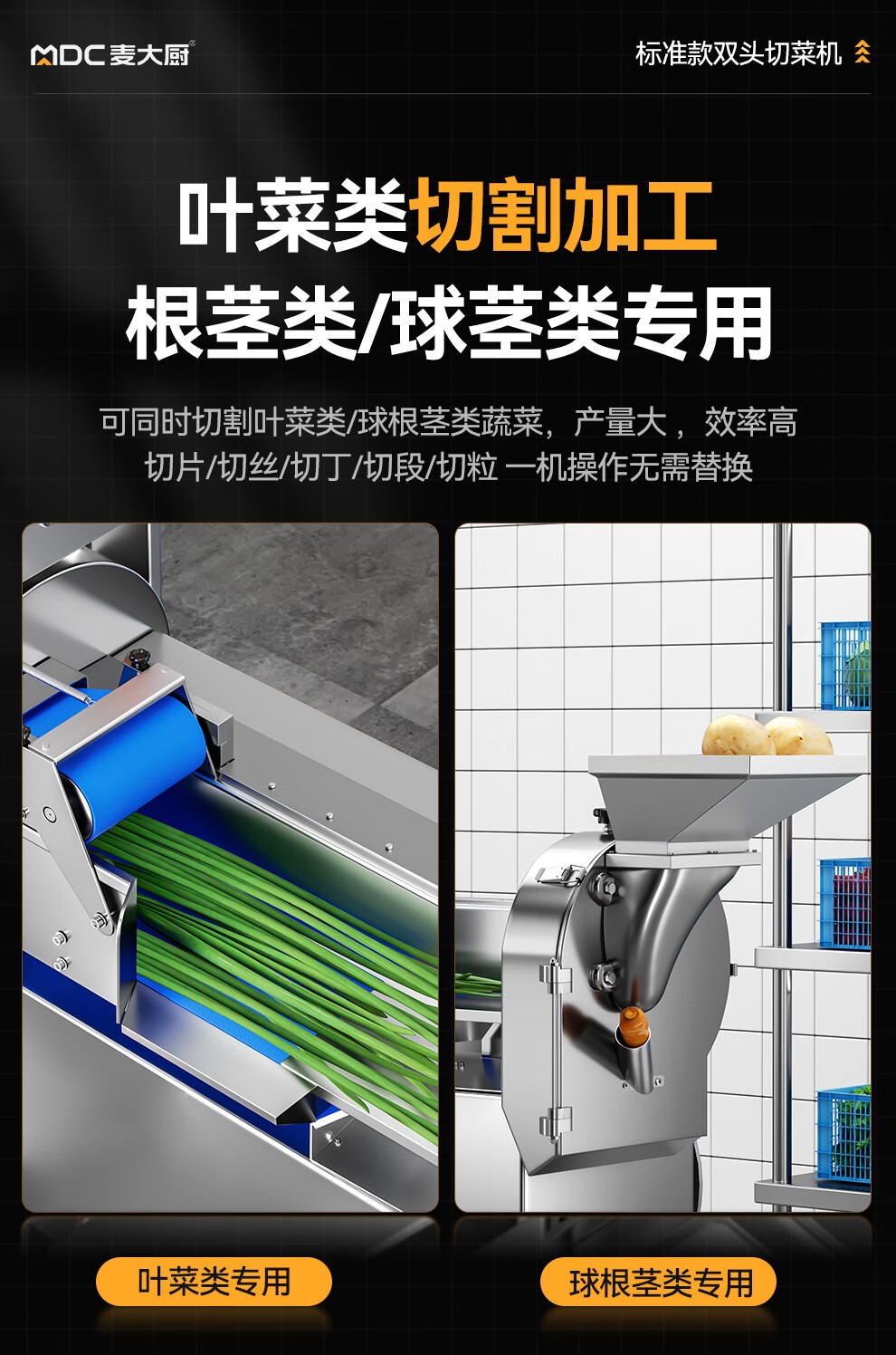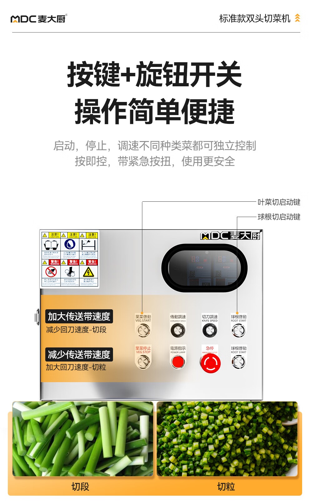 麥大廚商用葉菜球根莖類切段切丁機標準款雙頭多功能切菜機