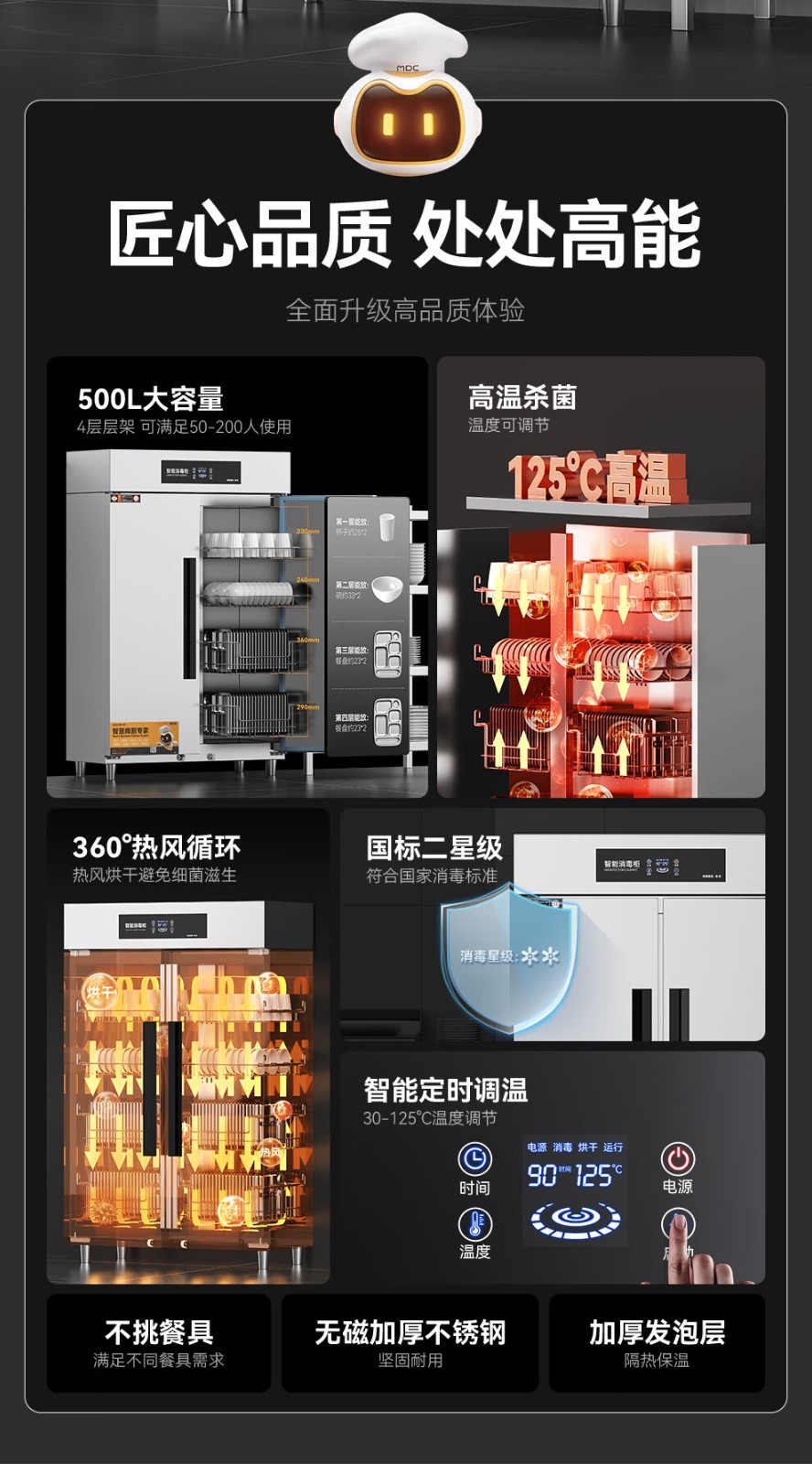 麥大廚智能電腦型雙門單控4層熱風(fēng)循環(huán)高溫消毒柜1520W