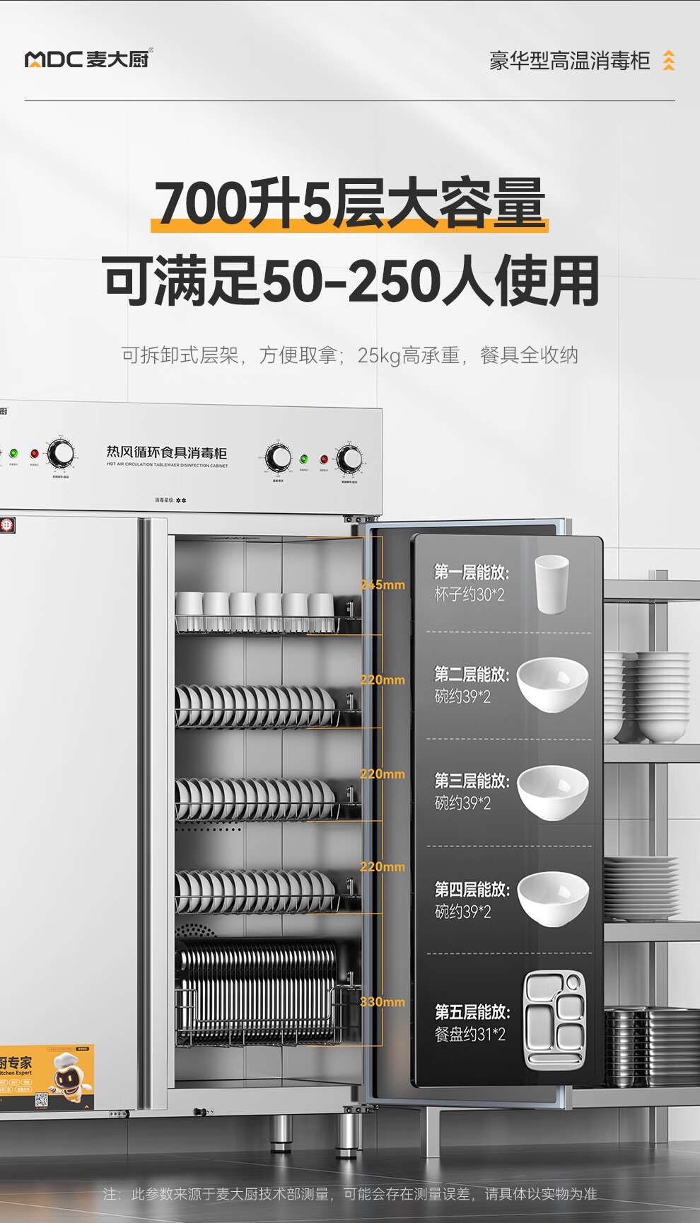 麥大廚豪華旋鈕型雙門雙控5層熱風循環高溫消毒柜1870W