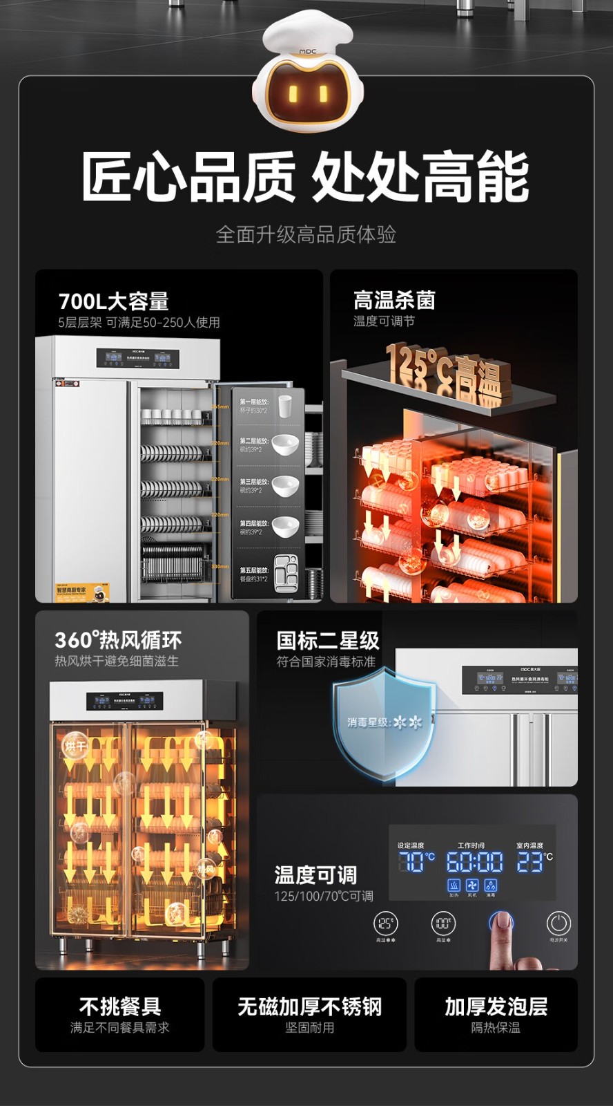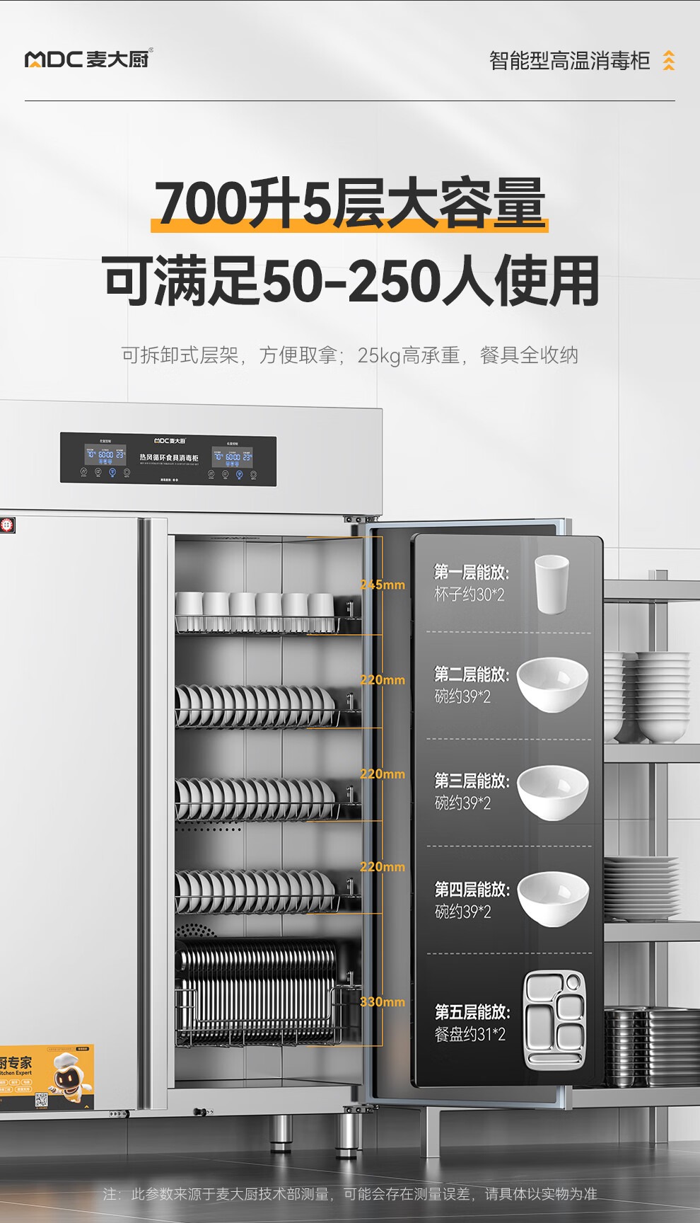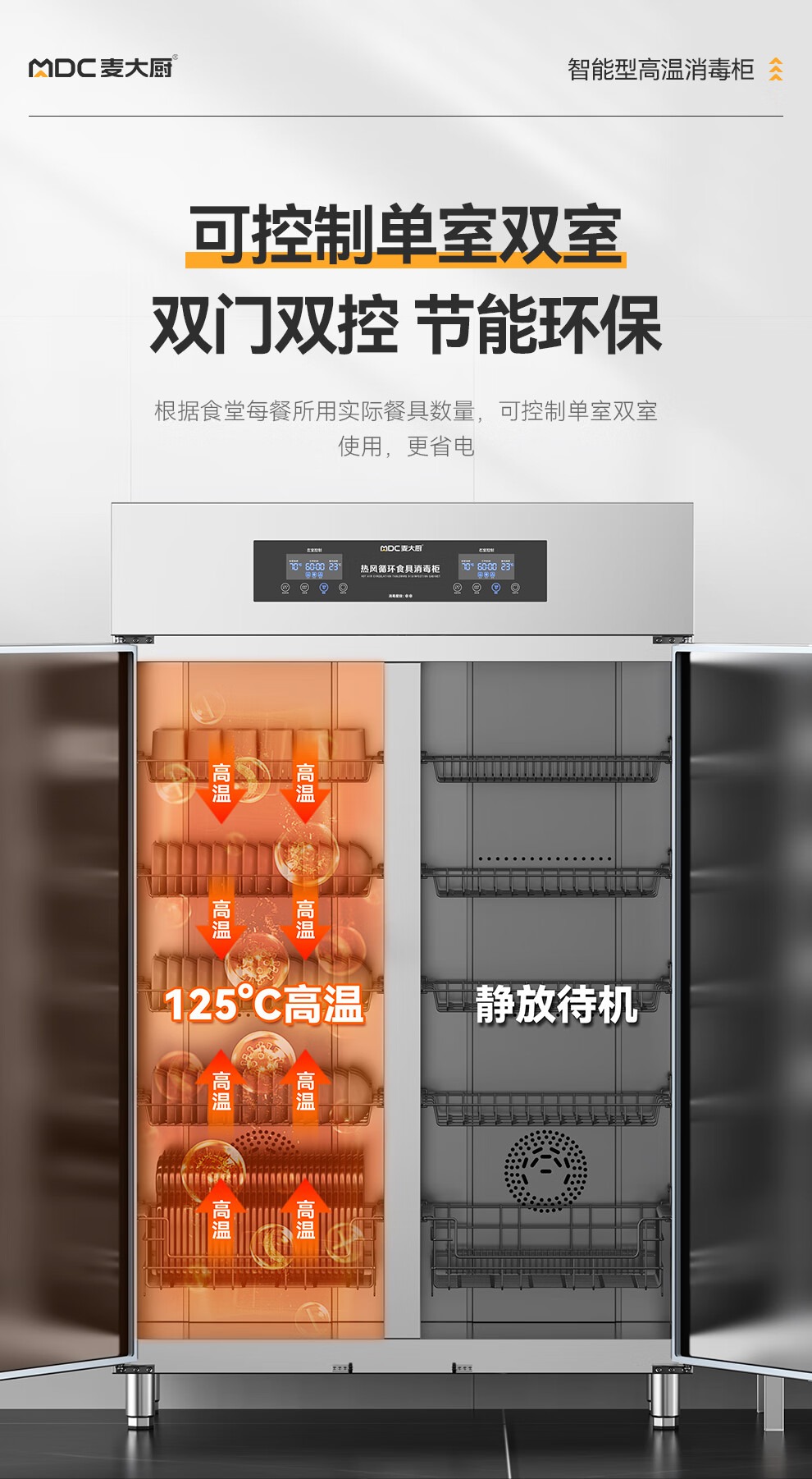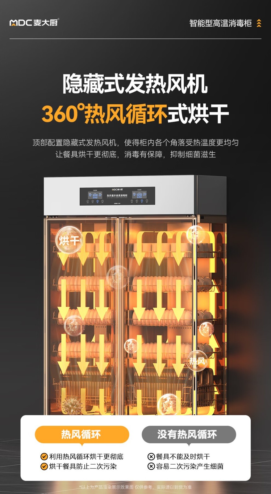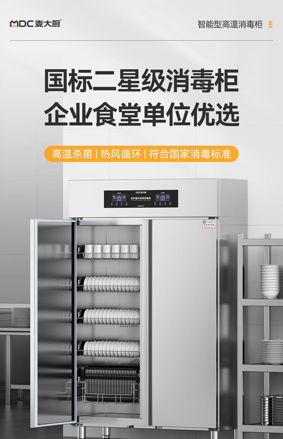 麥大廚智能電腦型雙門雙控5層熱風循環(huán)高溫消毒柜1870W