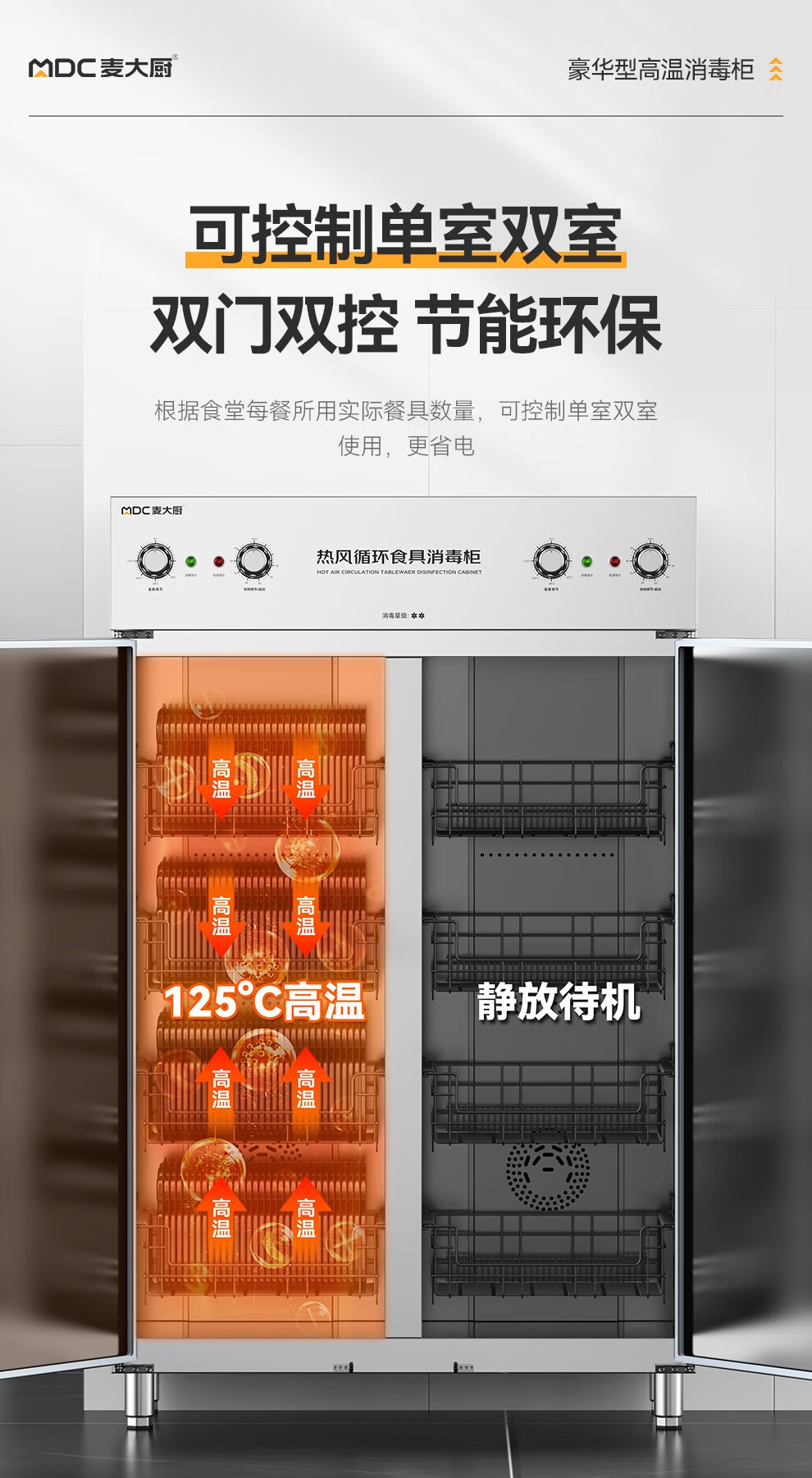 麥大廚豪華旋鈕型雙門雙控4層熱風循環高溫消毒柜1870W