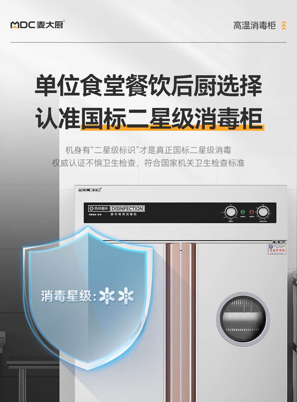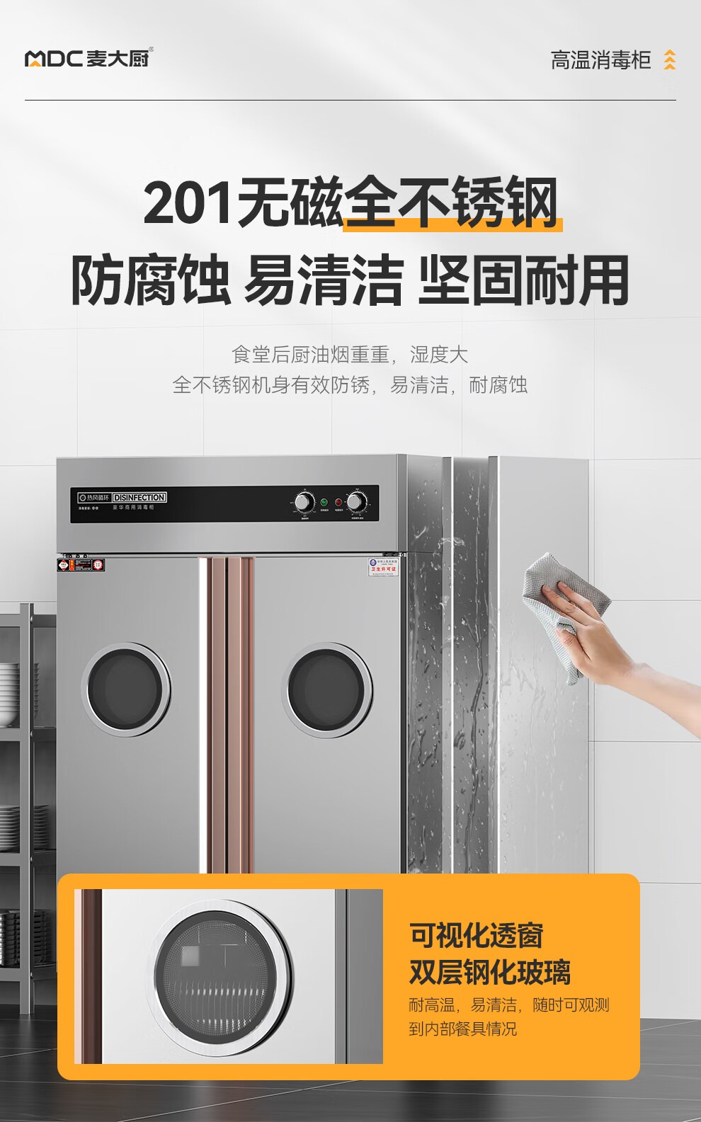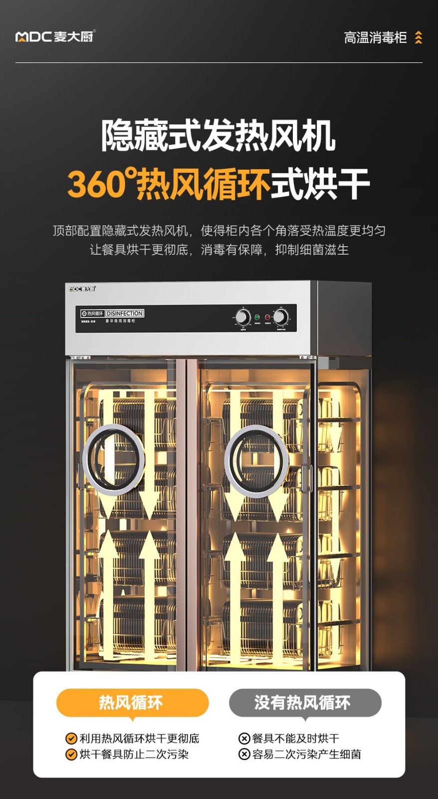 麥大廚豪華旋鈕型雙門單控4層熱風(fēng)循環(huán)高溫消毒柜3.5KW