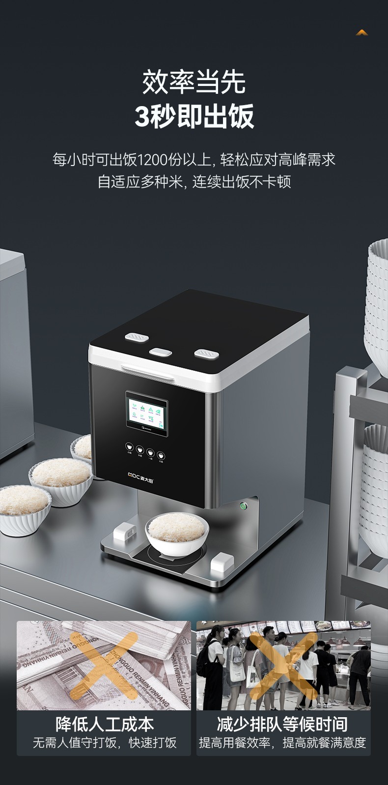 出飯效率:3秒/次,1200份/小時