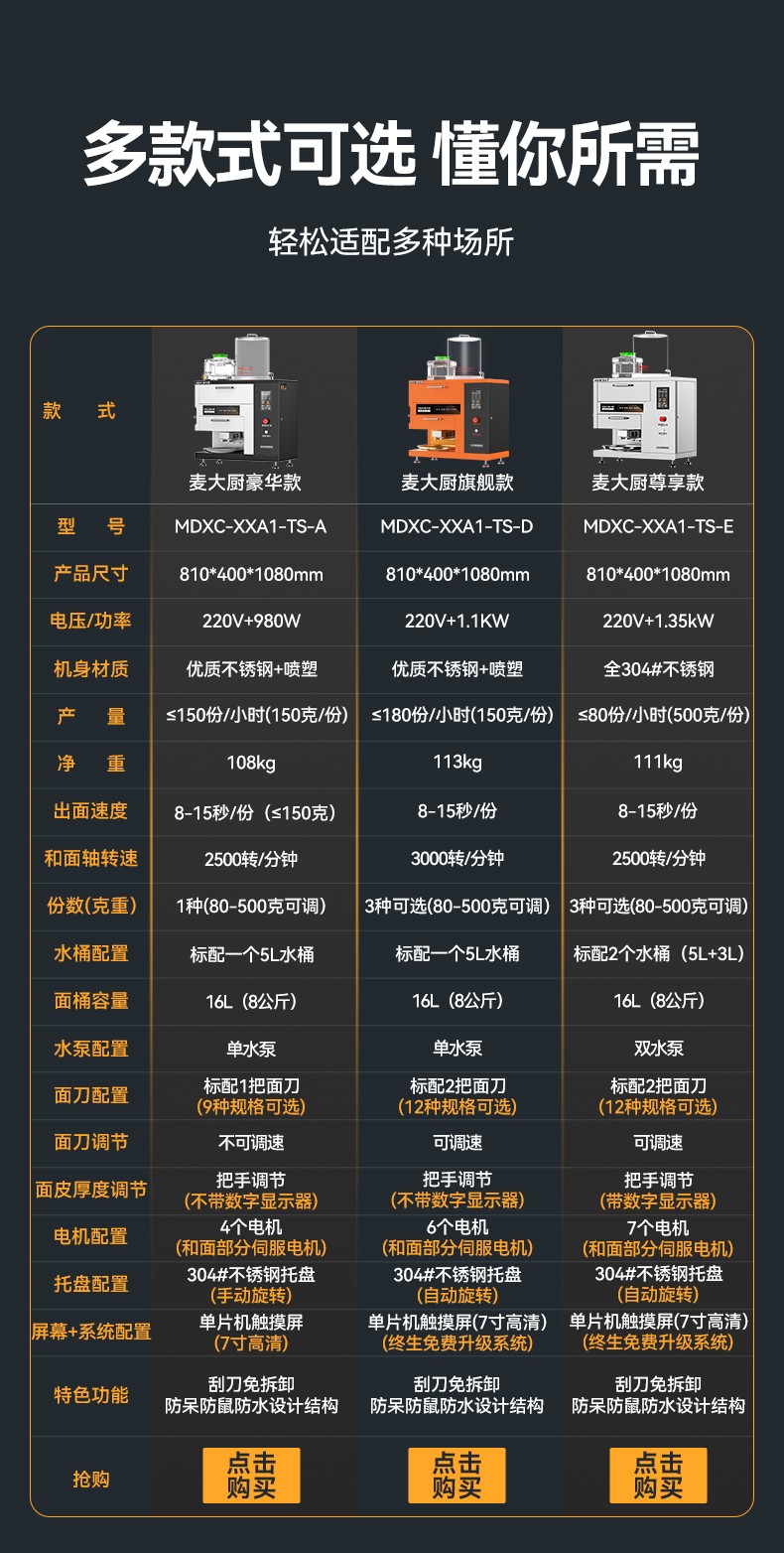 麥大廚220V豪華款臺式A型全白動智能面條機商用