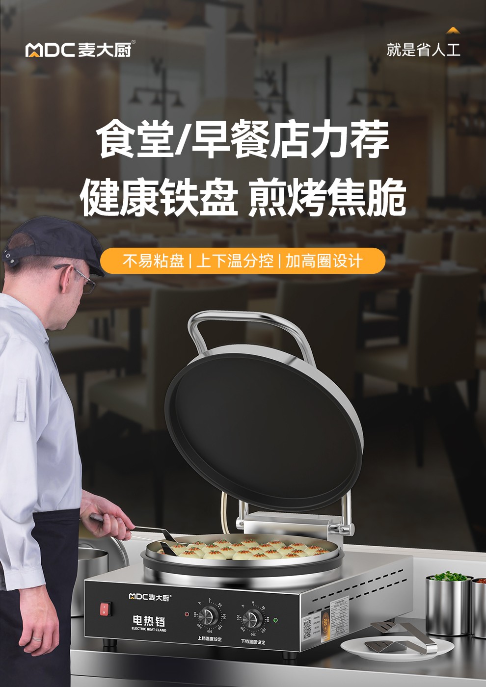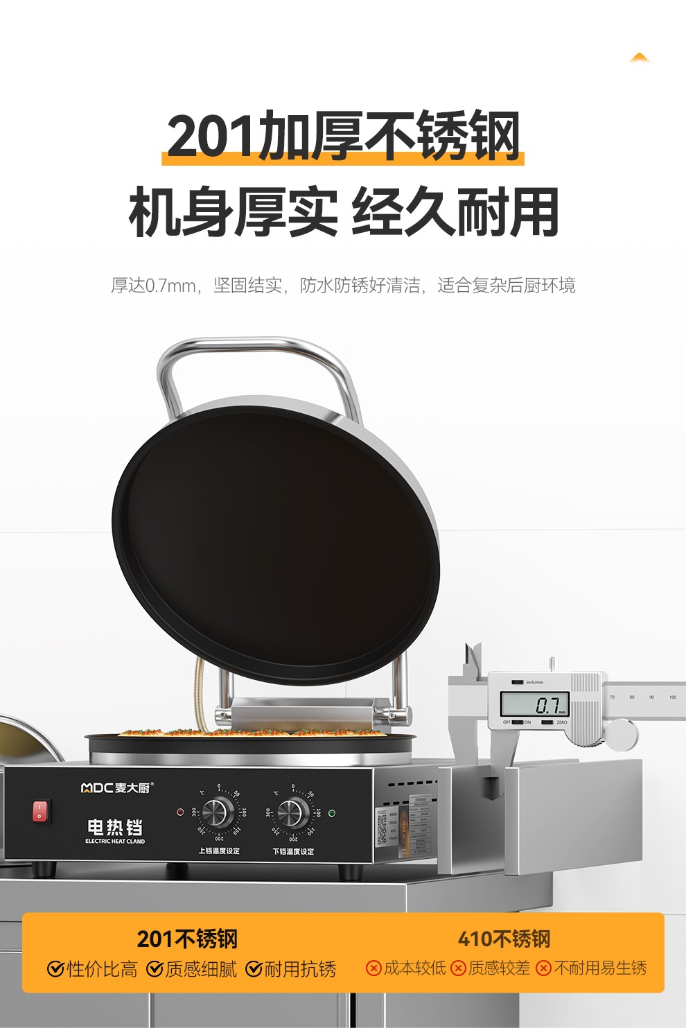 麥大廚臺式旋鈕款鐵鍋商用電餅鐺大型雙面加熱