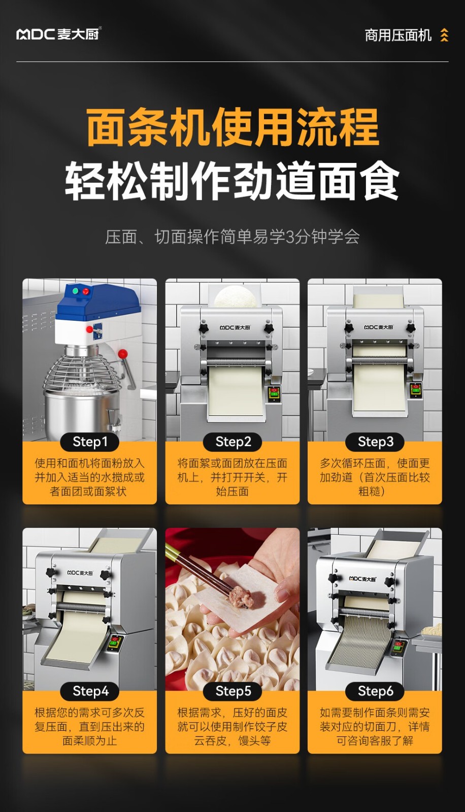 麥大廚標準款2.2KW商用壓面條機全自動軋面條機
