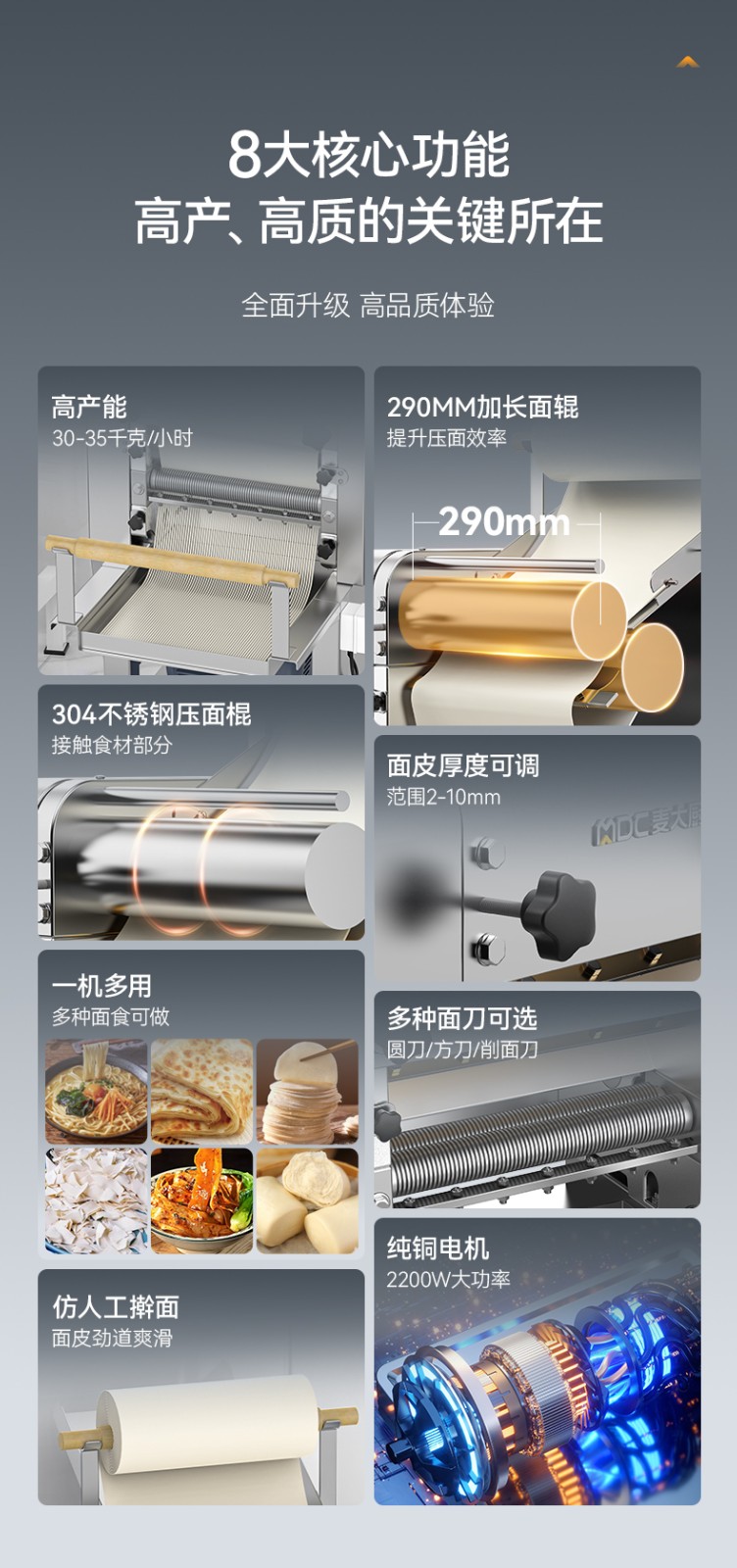 麥大廚連鎖款2.2kw商用壓面條機全自動軋面條機