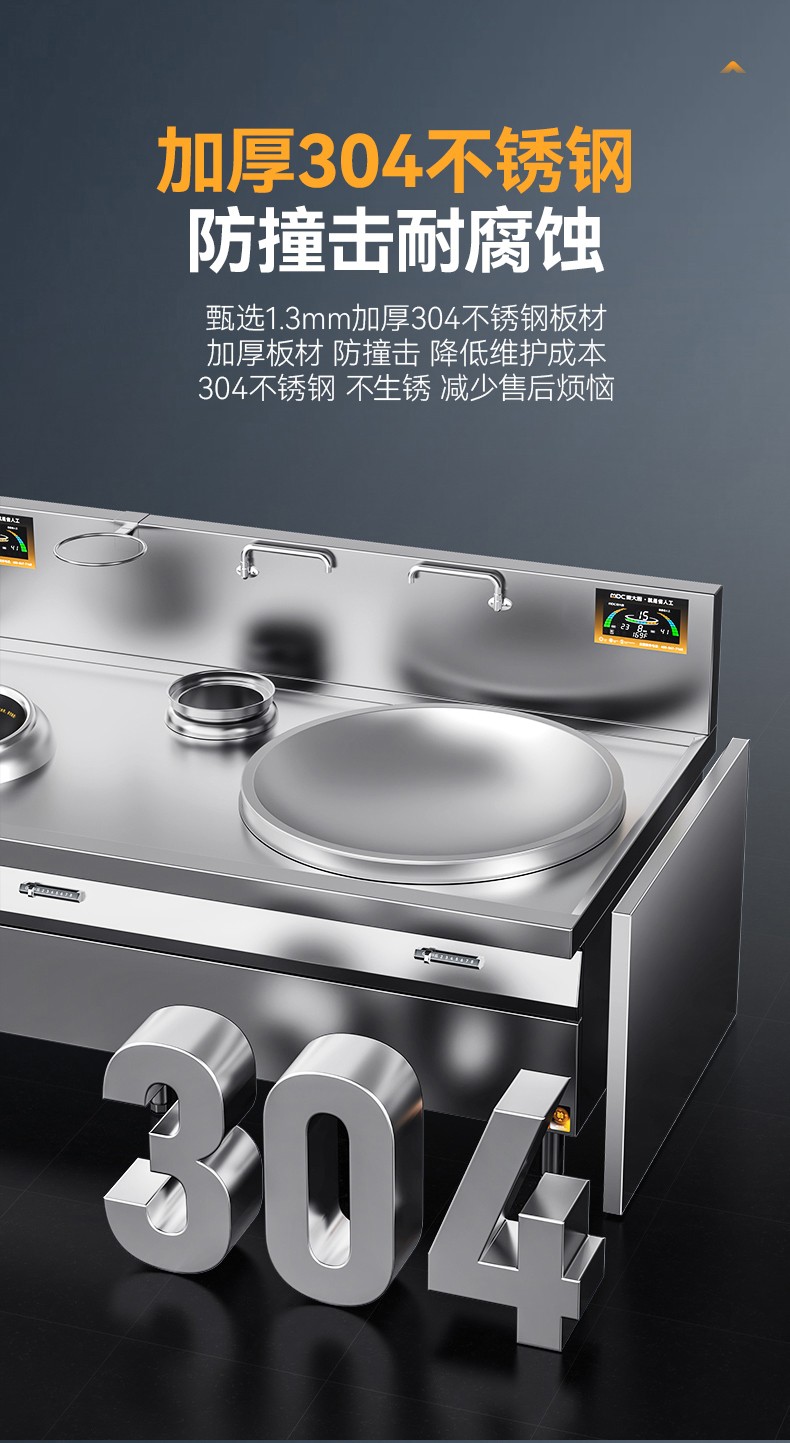 首頁(yè) > 商廚產(chǎn)品 > 電磁灶 > 大小組合爐 >麥大廚星麥款左400右1000大小組合爐商用